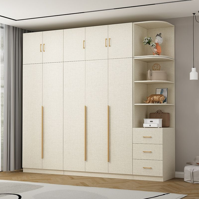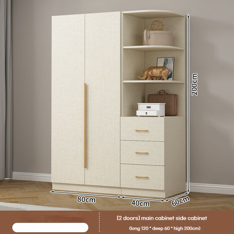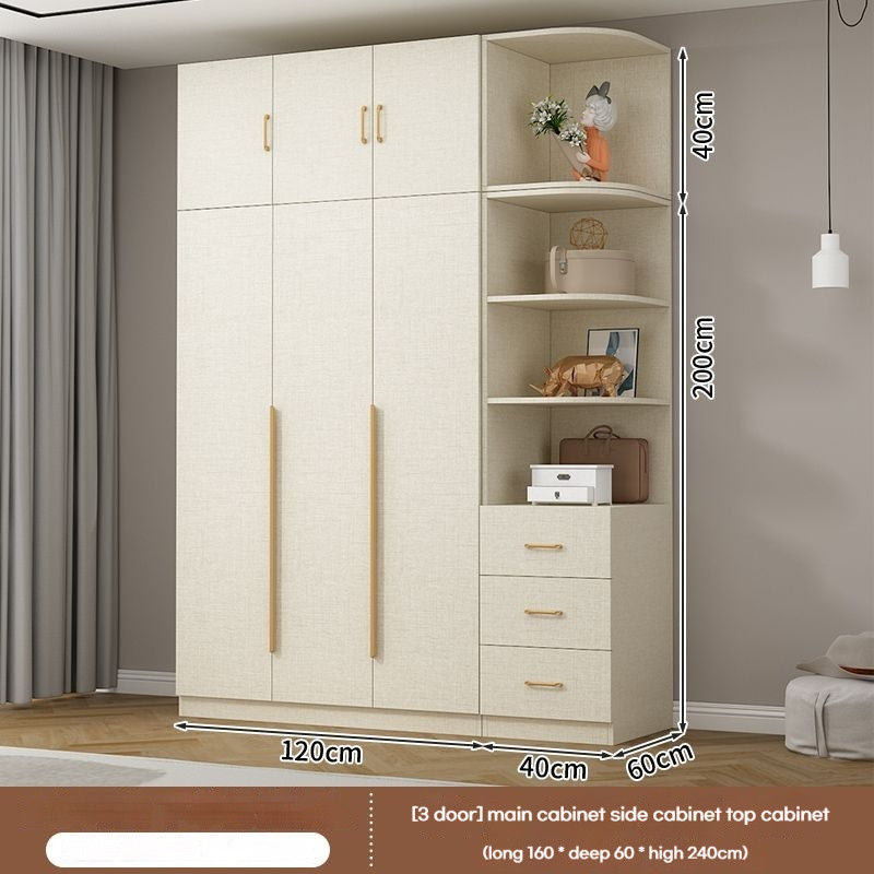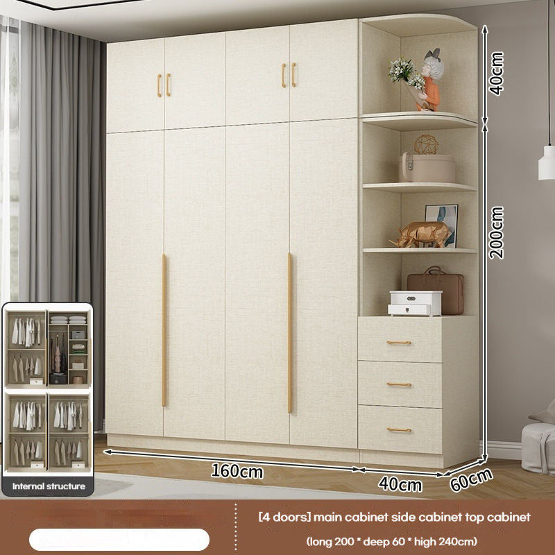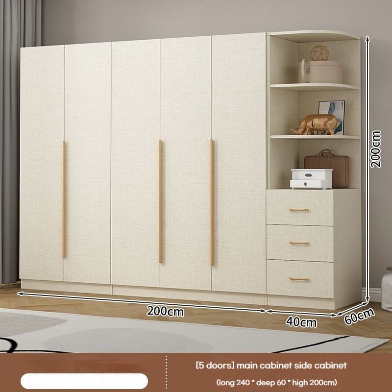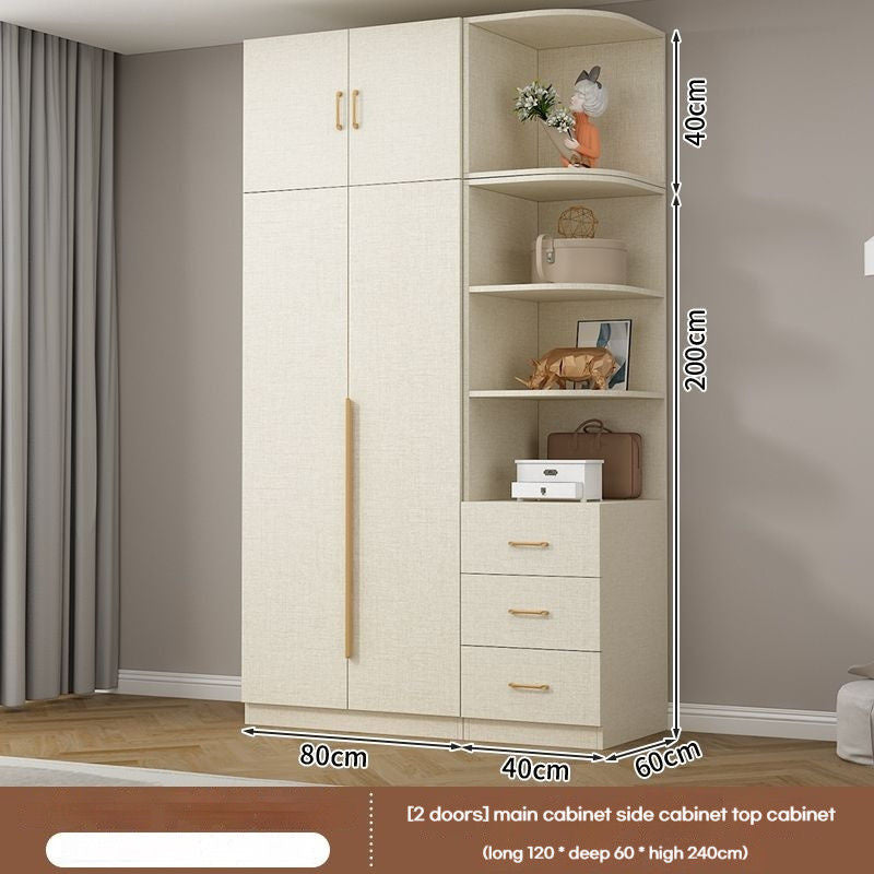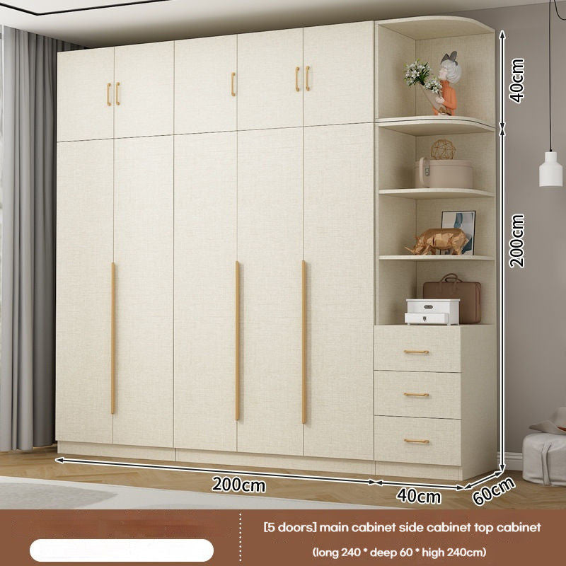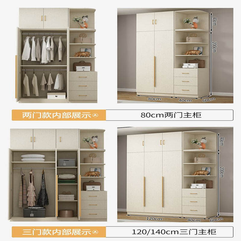 ตู้เสื้อผ้าไม้เนื้อแข็งหนาแผ่นหลังตู้เสื้อผ้าหน้าแรกห้องนอนตู้เสื้อกันลมครีมความจุสูงตู้เสื้อผ้าบ้าน