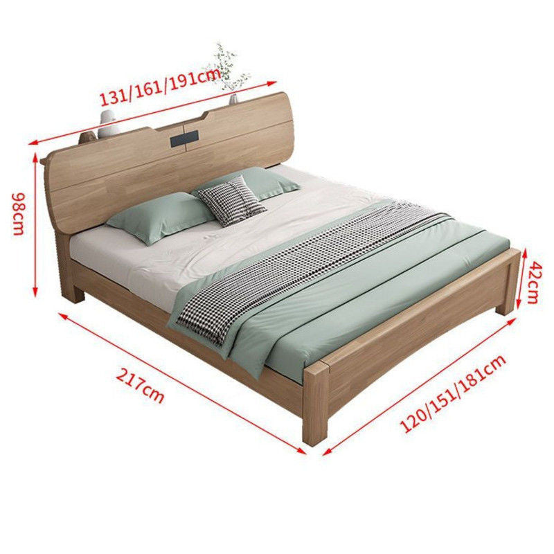 เตียงไม้เนื้อแข็งเตียงโมเดิร์นเรียบง่ายนอร์ดิกห้องนอนใหญ่ 1.8 เตียงควีนไซส์ล็อกเดี่ยว 1.5 เตียงไม้โอ๊ค