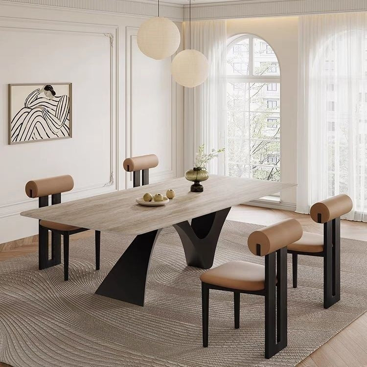 โต๊ะอาหารนอร์ดิกชนหินแสงหรูหราระดับไฮเอนด์โต๊ะยาวเก้าอี้รับประทานอาหารรูปสี่เหลี่ยมผืนผ้าแบบเรียบง่ายของอิตาลี