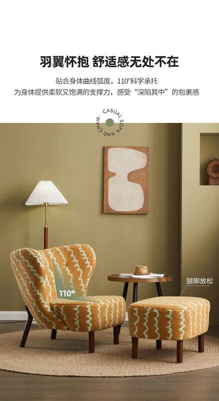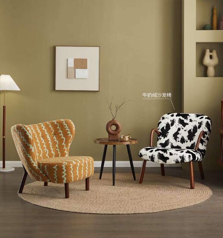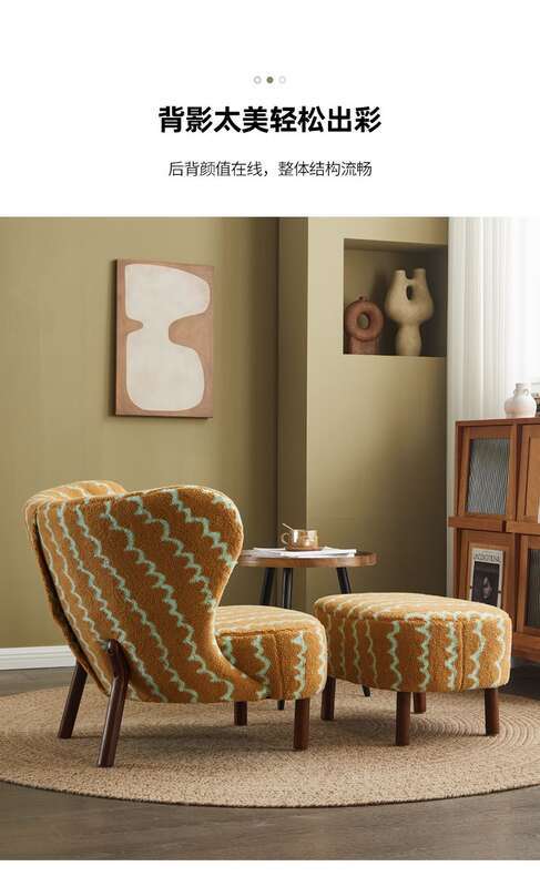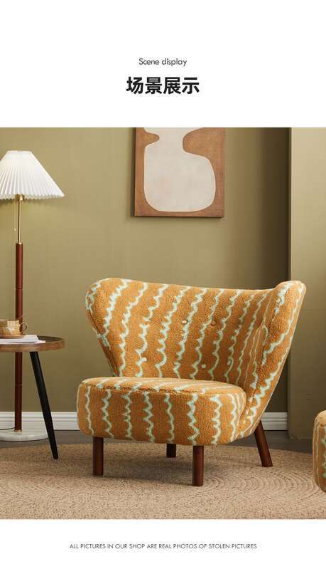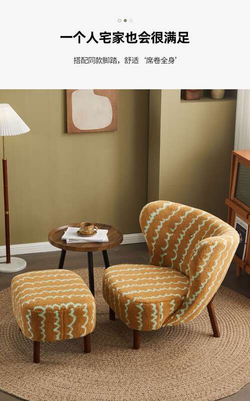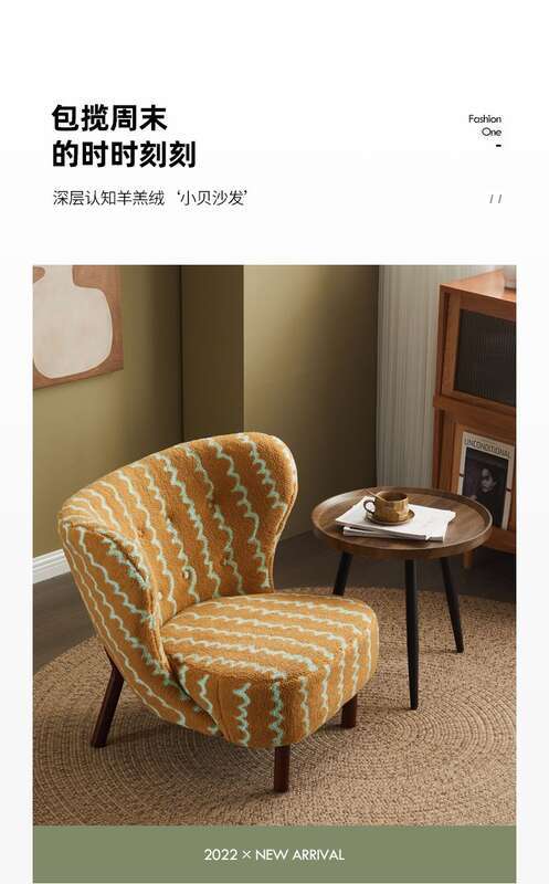 Simple Design Vintage Feeling Single Leisure Chair Sheepskin Jacquard Living Room Balcony Lazy Sofa
