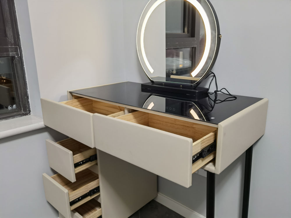 Solid Wood Bedside Table, Simple Dressing Table with Bin Cabinet for Home