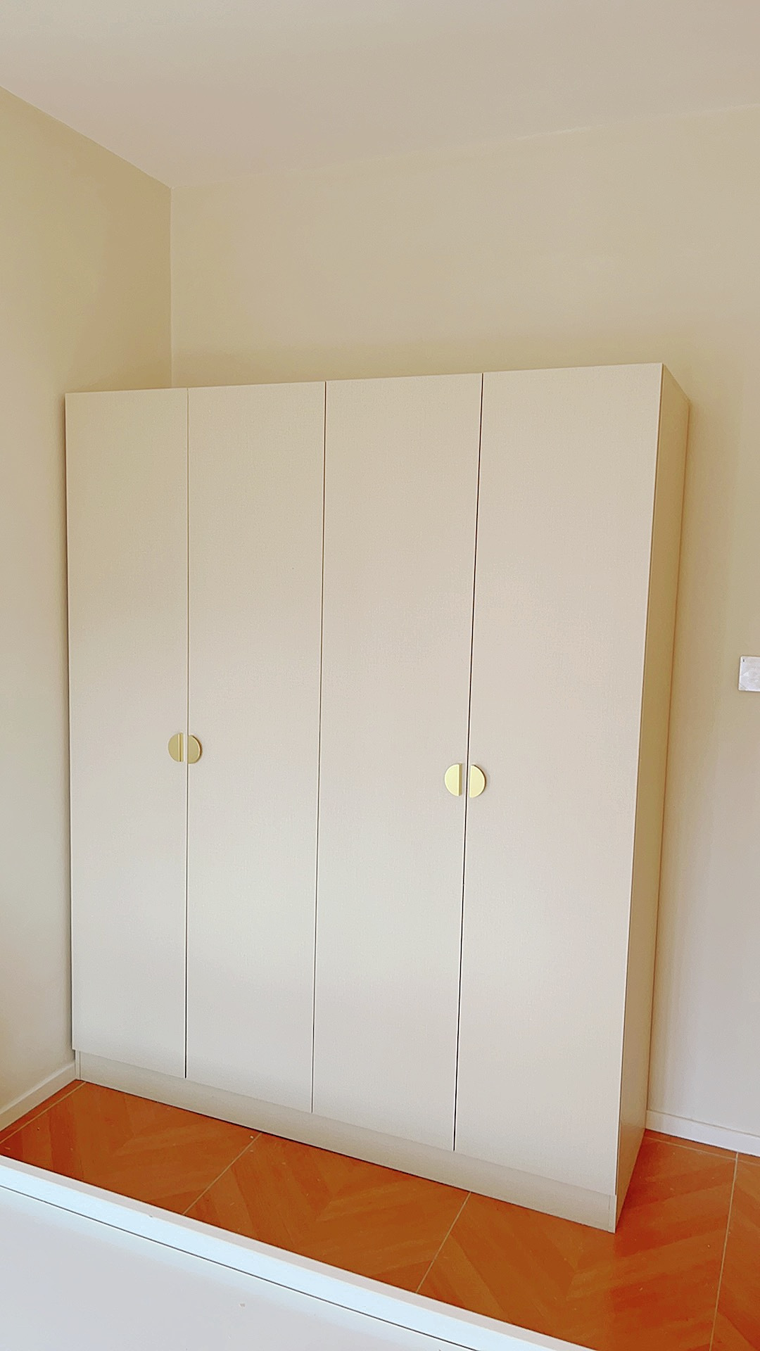 ภายในประตูเปิดคู่ตู้เสื้อผ้าครีมลมขนาดใหญ่ที่มีขนาดใหญ่ขนาดใหญ่