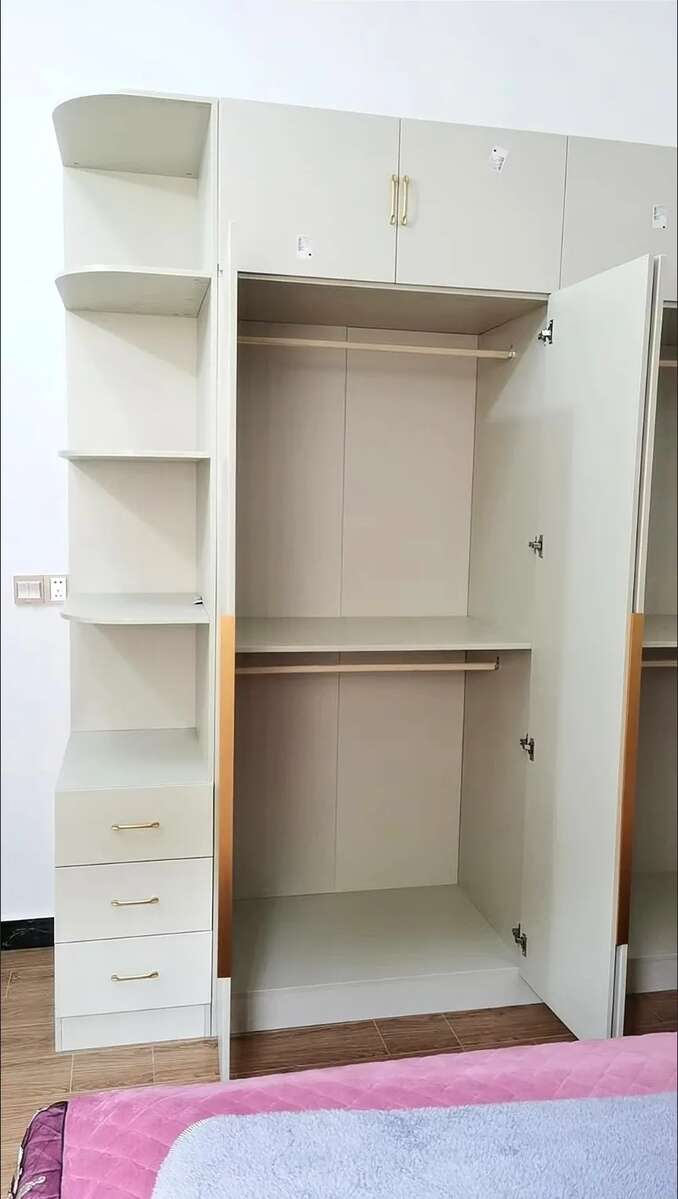 ตู้เสื้อผ้าหนาแผ่นหลังหน้าแรกห้องนอนตู้เสื้อกันลมครีมความจุสูงตู้เสื้อผ้าบ้าน