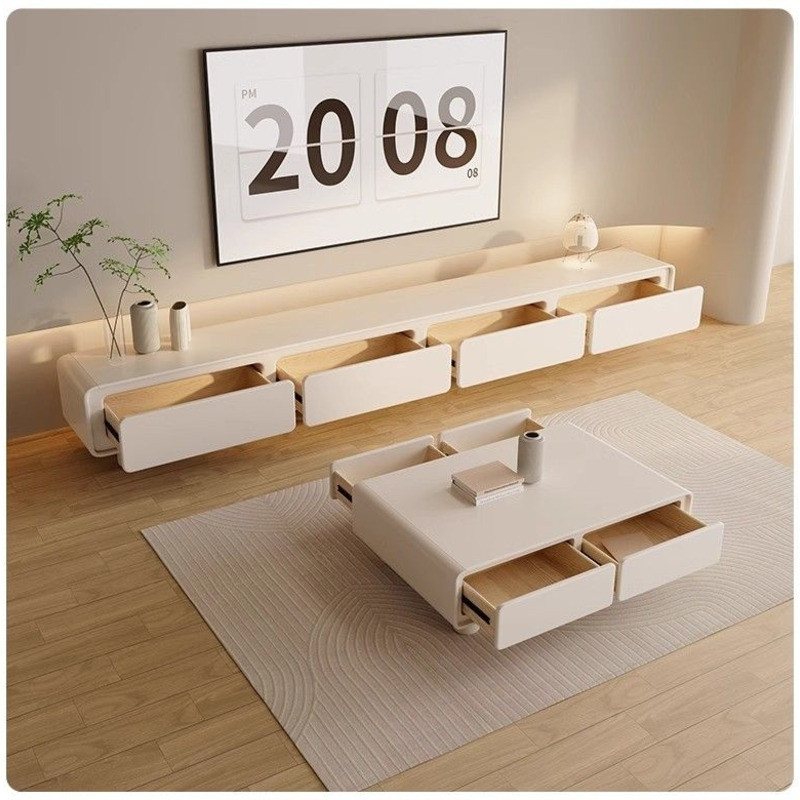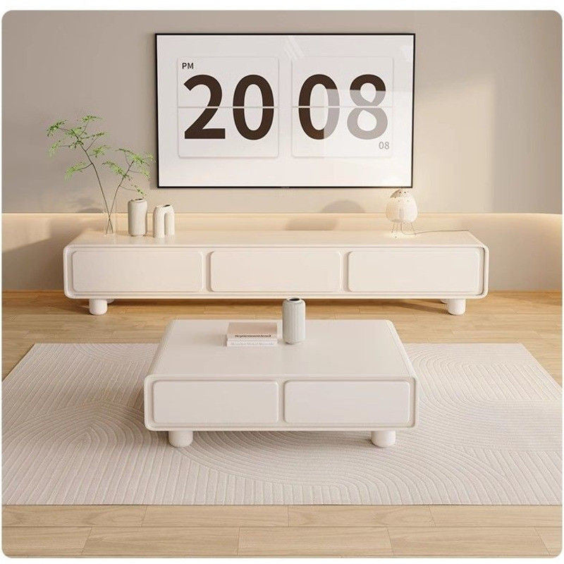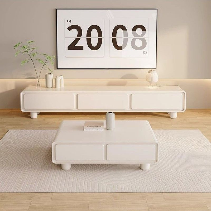 เมนูกลมครีมลมทีวีตู้สีขาวที่เรียบง่ายในโต๊ะกาแฟรวมห้องนั่งเล่นขนาดเล็กชั้นใน...