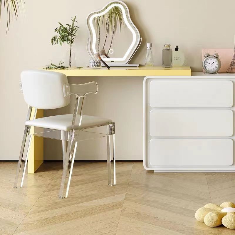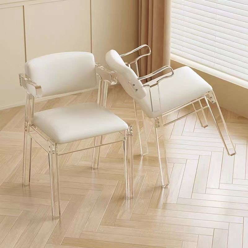 เก้าอี้อะคริลิคใสแสงสีขาวหรูหราหรูหราเป็นพิเศษเก้าอี้คริสตัลห้องนอนหน้าแรกเก้าอี้แต่งหน้าโต๊ะเก้าอี้ Z