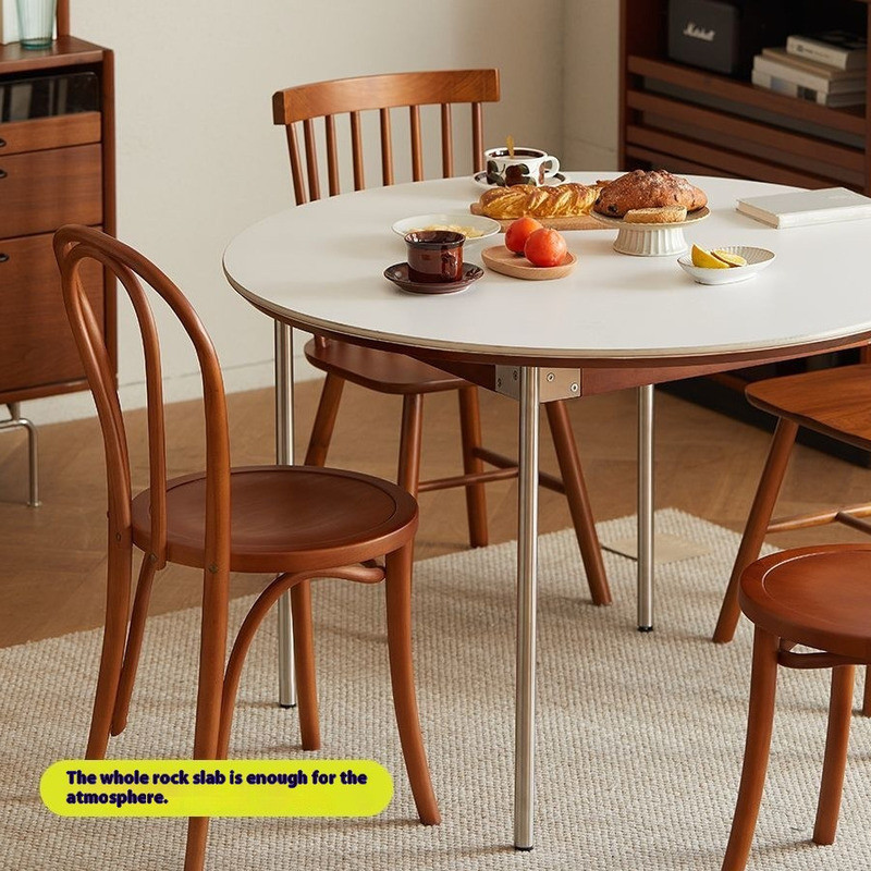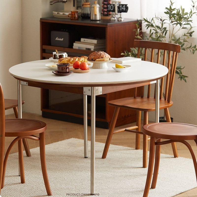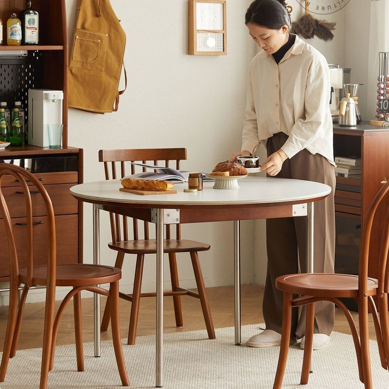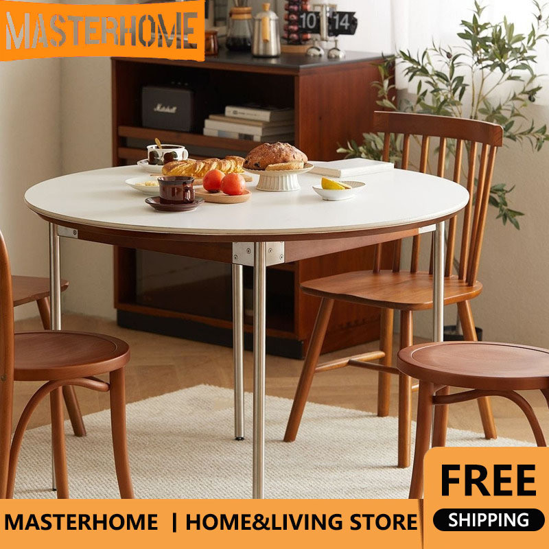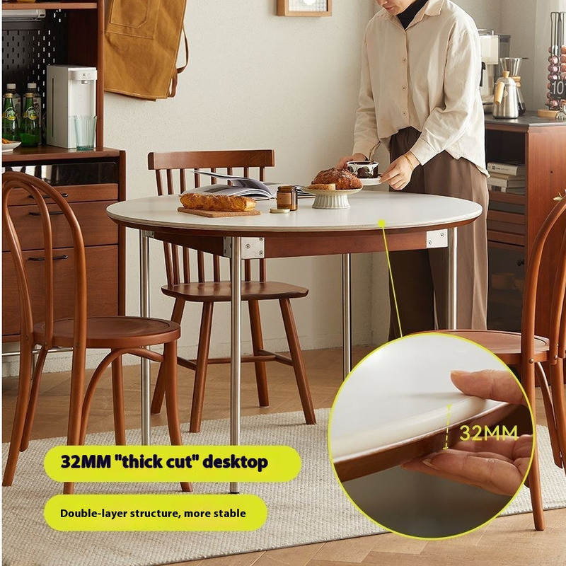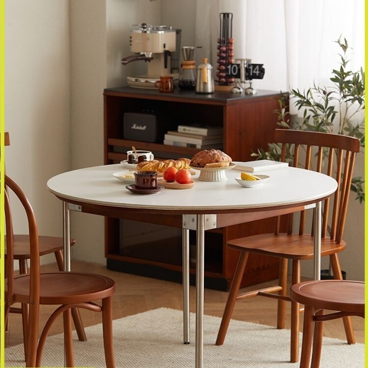 โต๊ะกลมโต๊ะกลมนี้สามารถใช้ได้กับสไตล์นอร์ดิกสีขาวที่เรียบง่ายขาสแตนเลสโต๊ะรองรับและเก้าอี้รวม