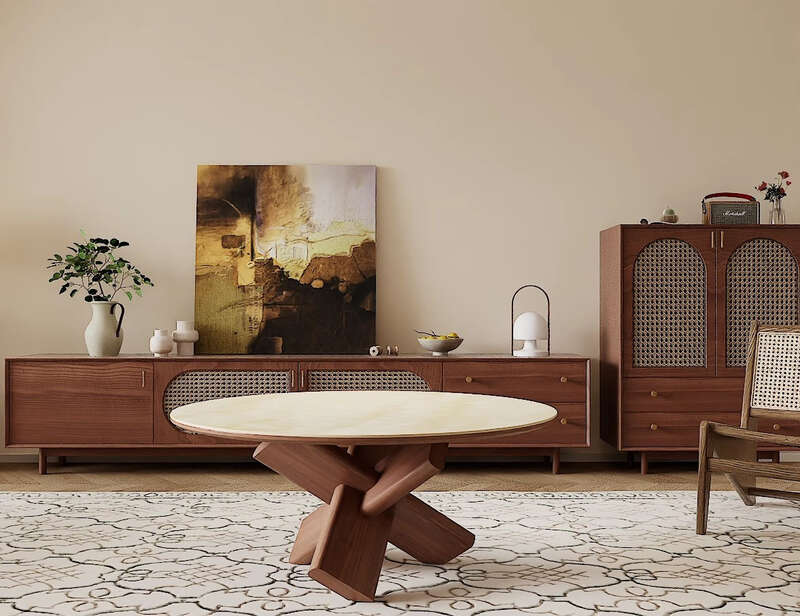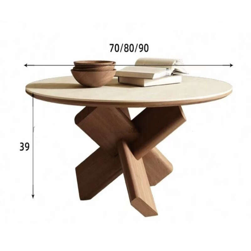 Coffee table, stone board, solid wood, round dowel and white ash base, living room, home coffee table.