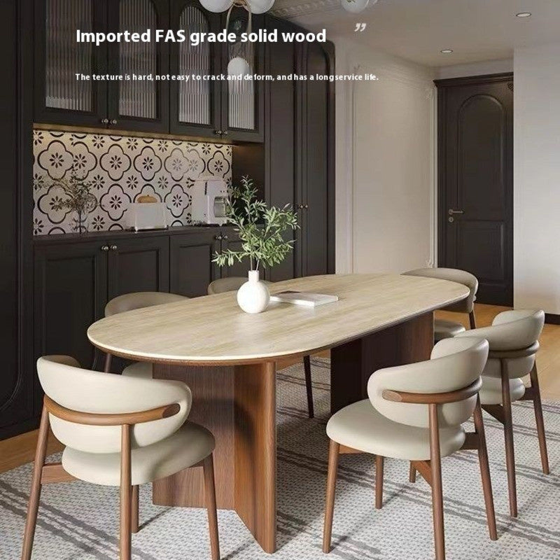 European-style solid wood stone cave dining table fully supports lightweight and elegant design suitable for living room.