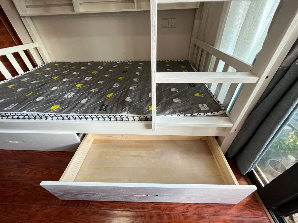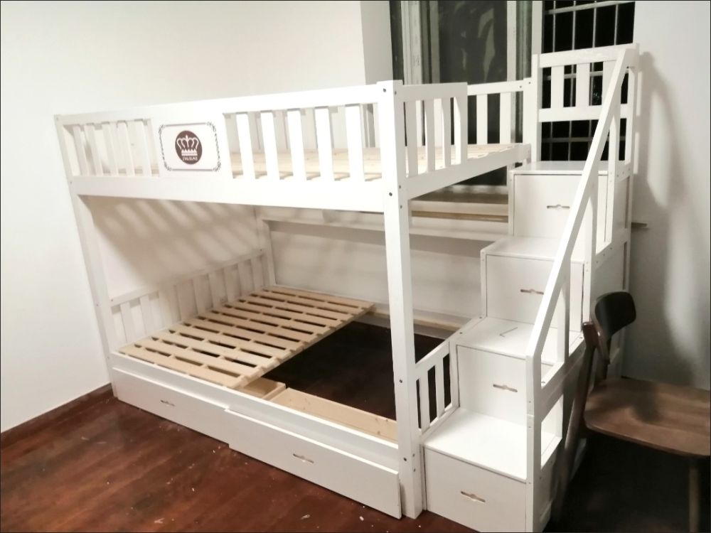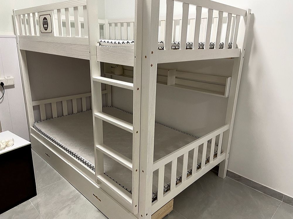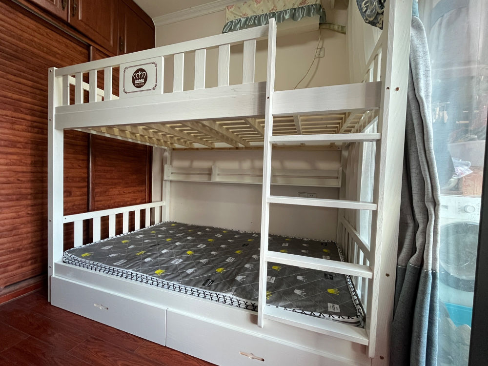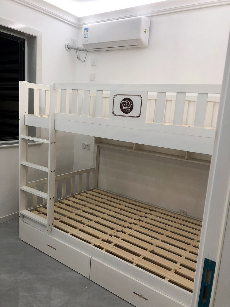 European template solid wood high low small bed, children's upper and lower beds, white oak house bunk bed