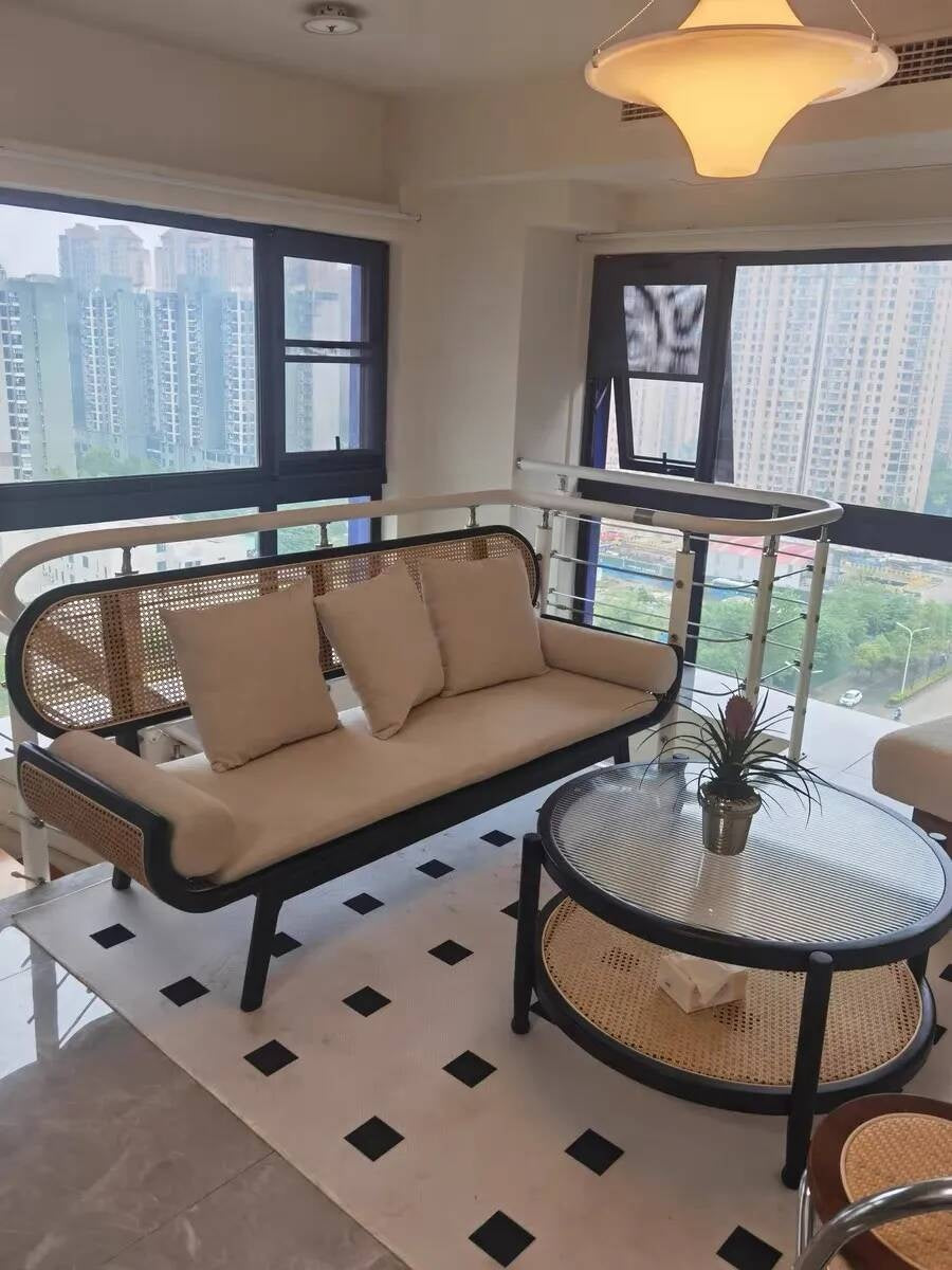 French Solid Wood Knitted Sofa Lazy Living Room Rattan Creative Small Indoor Leisure Chair