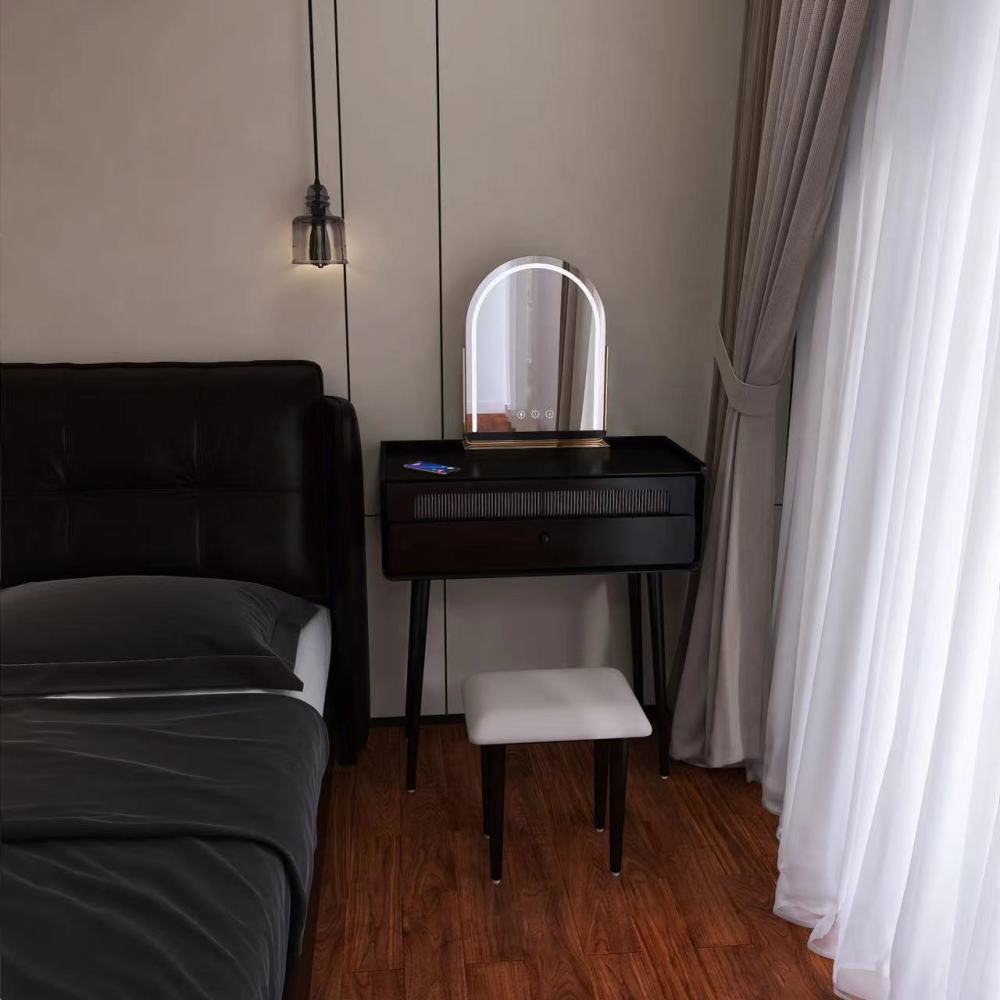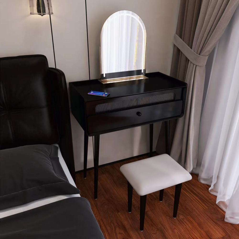 French Style One Bedroom Storage Black Multi-Functional Dressing Table with Mirror