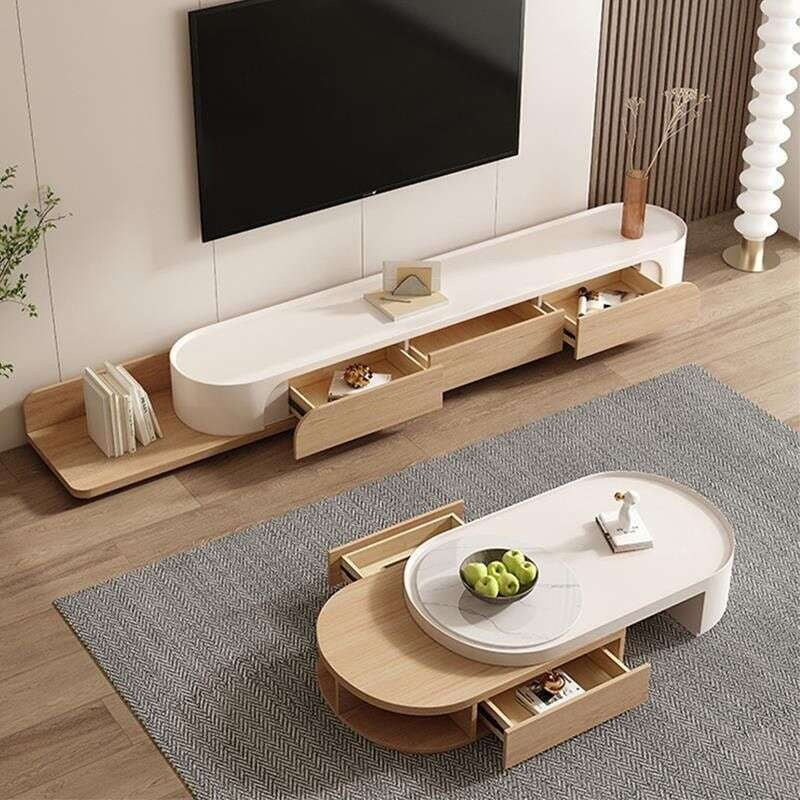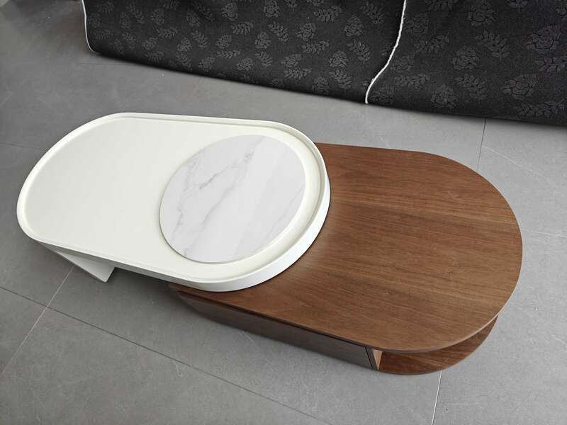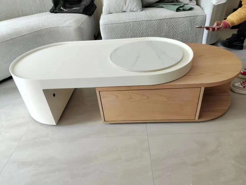 Light Elegant Cream Wind Color Simple Living Room Home Foldable Coffee Rounded Tea Table Eco-Friendly Solid Wood
