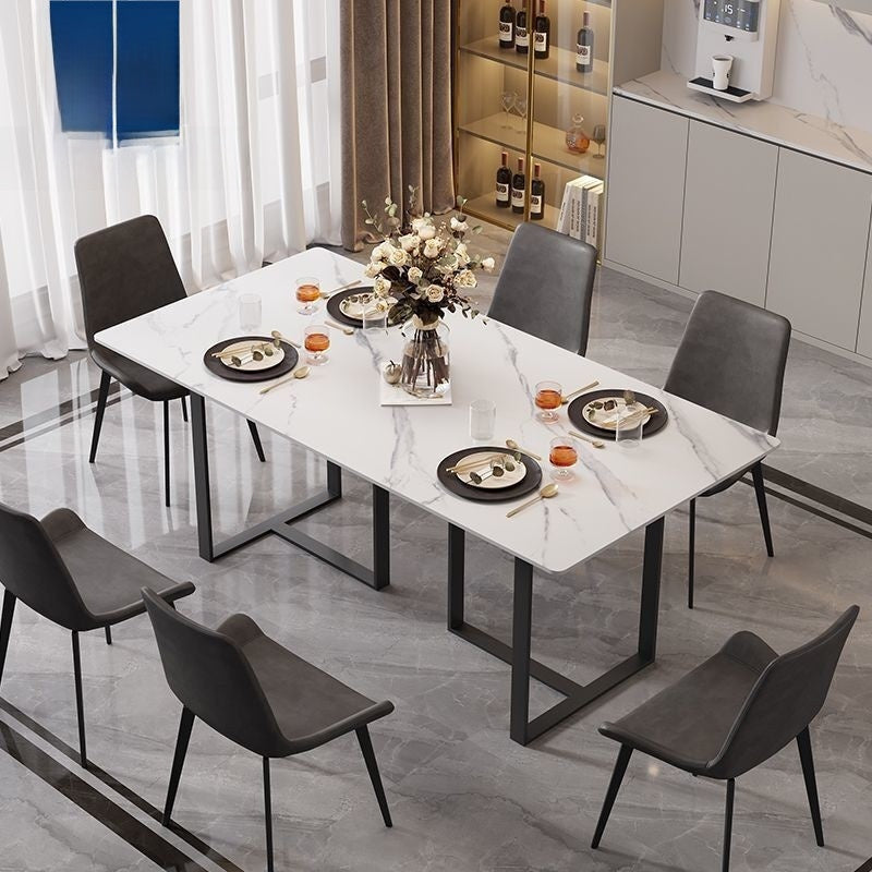 Marble dining table, chair set, Nordic style, square shape, modern minimalist for home.