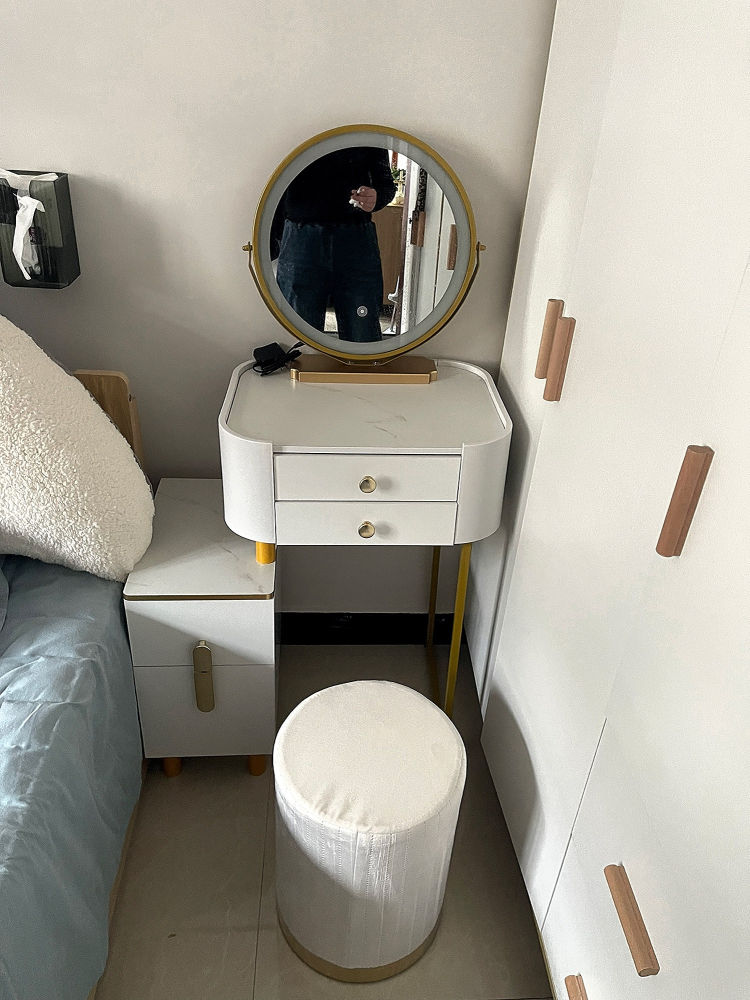 • Modern Simple Dressing Table Bedside Storage Cabinet Bedroom Makeup Multifunctional Mirror Chair