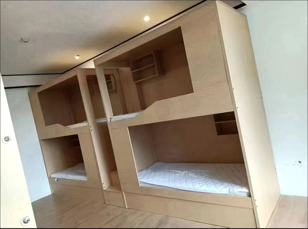 • Modern simple, floating bed, upper and lower bunk beds, creative design with drawers.