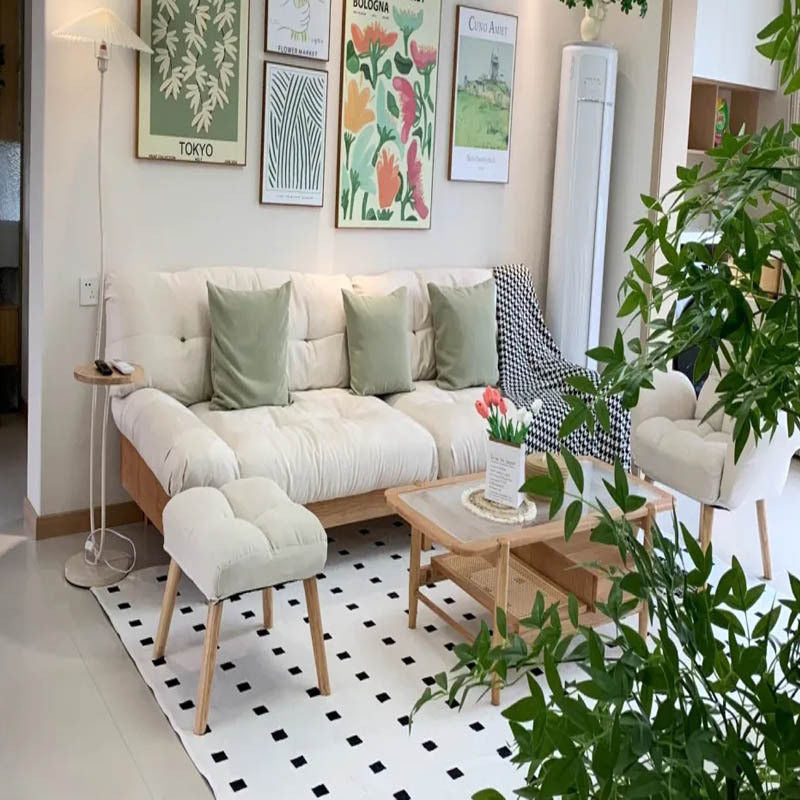 Nordic Full Set Solid Wood Sofa with Cloud Fabric, Simple Modern Living Room for Small Homes