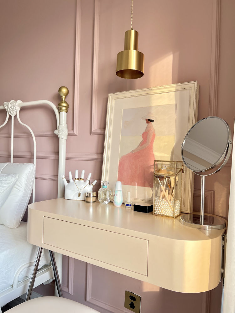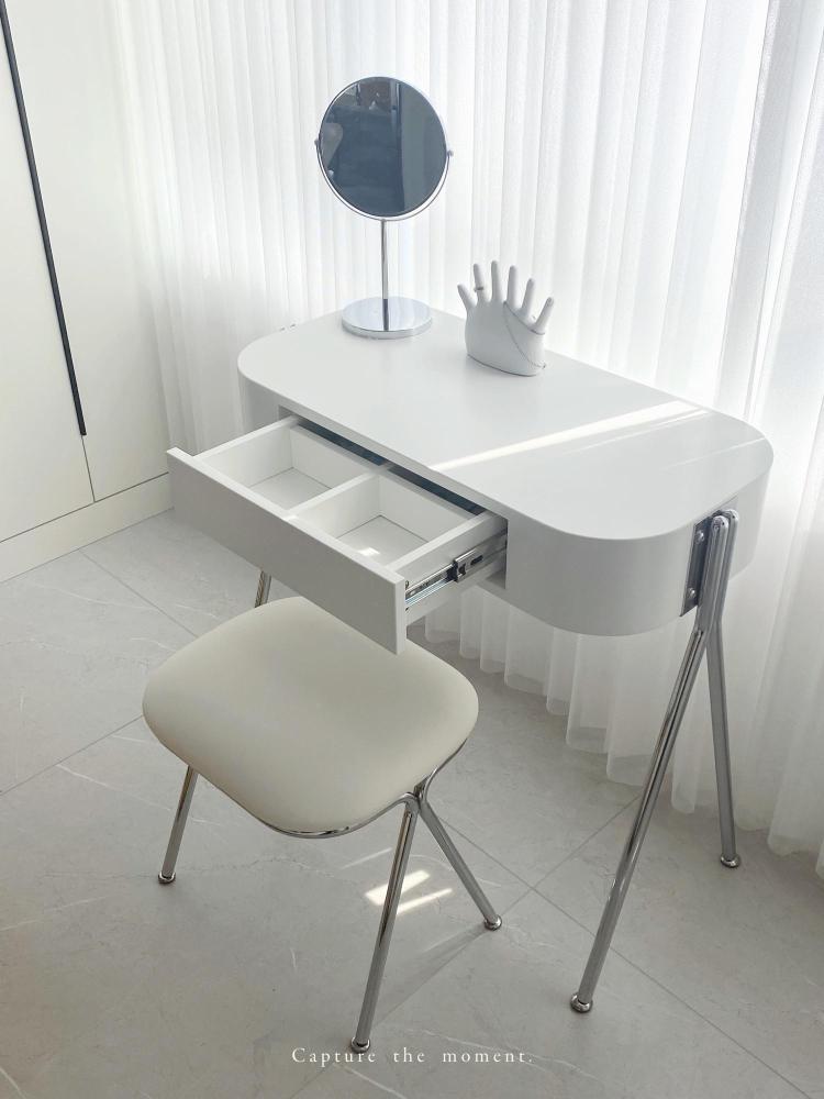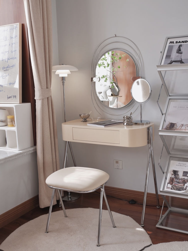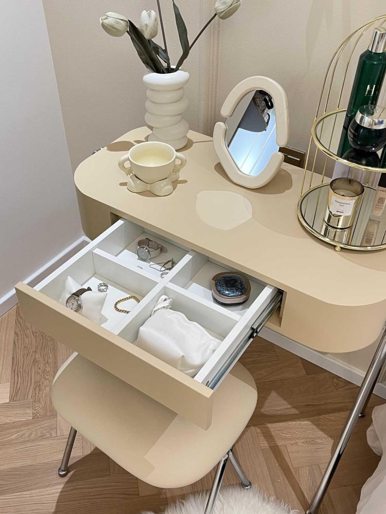 Nordic Light Luxury Simple Small Home Drawer Mirror Dressing Table Solid Wood One Makeup Storage