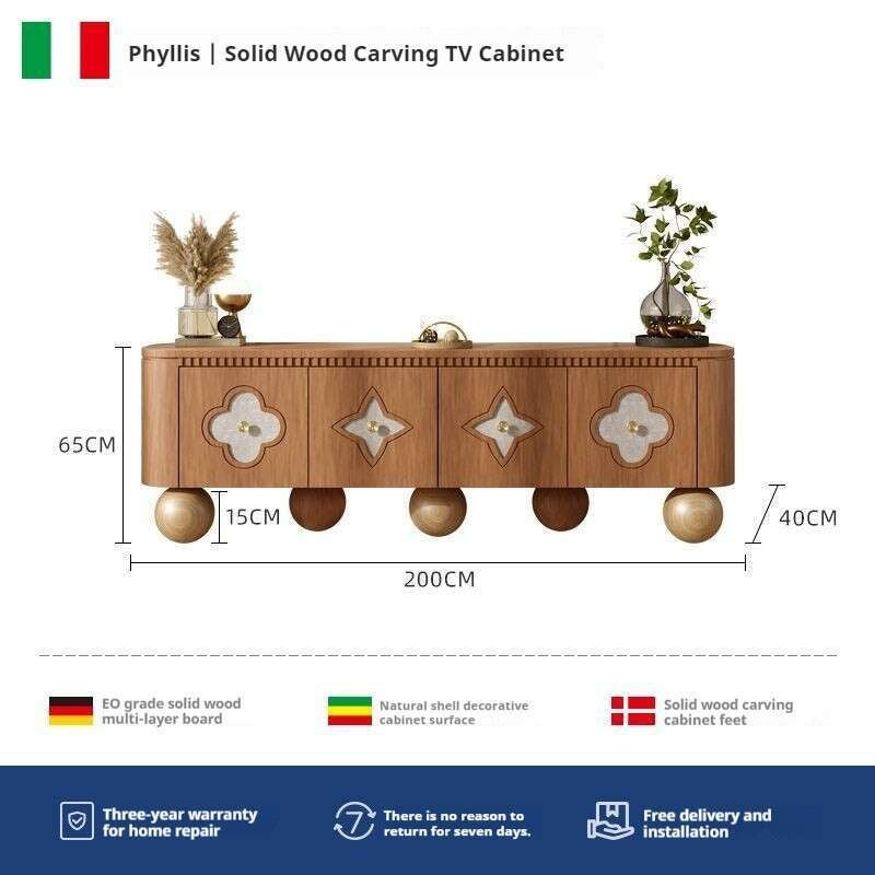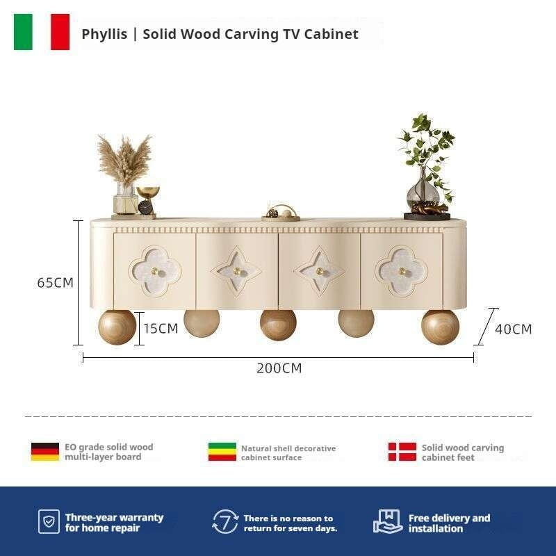Nordic Medium Cream Wind Design Sense TV Living Room Storage Solid Wood Small Shell Home Floor Cabinet