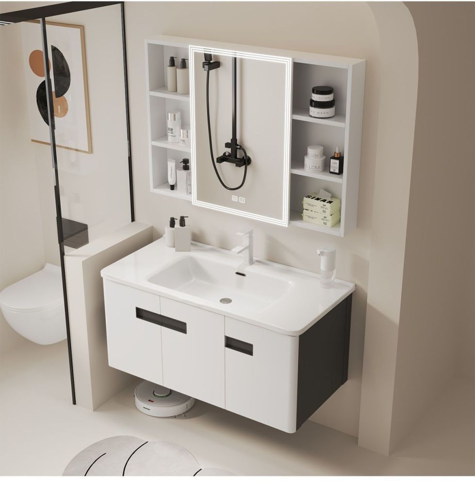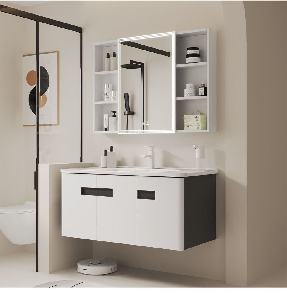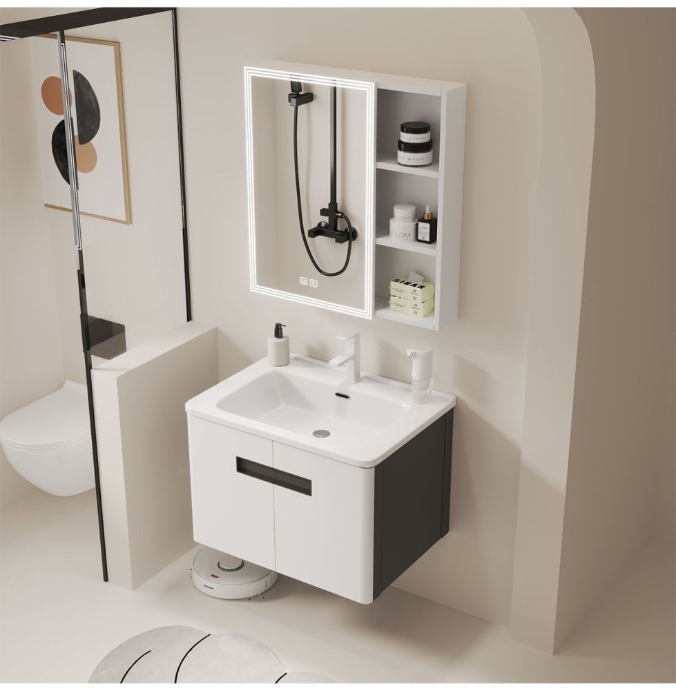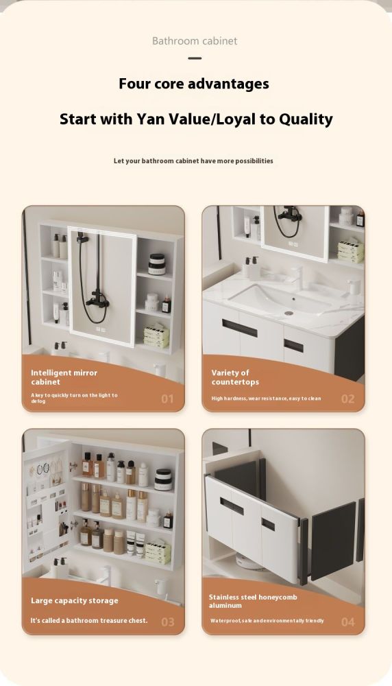 QW- alloy Aluminum makes a storage cabinet for the bathroom, mirror cabinet, and sink set.