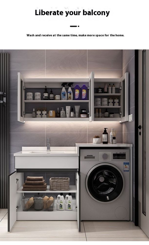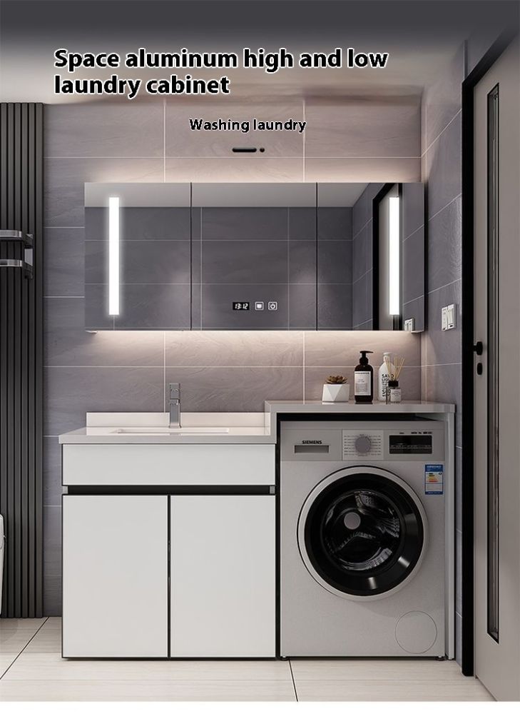 QW- Aluminum Bathroom Cabinet Set with Sink and Countertop Washing Machine