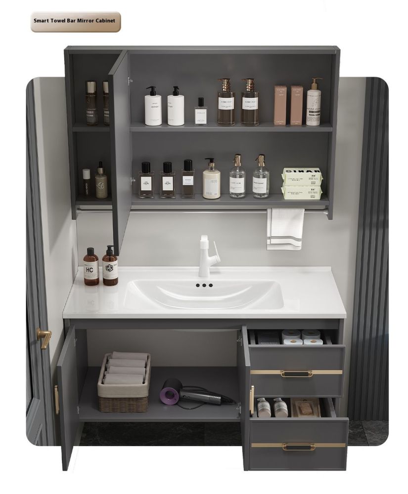 QW- Aluminum Storage Cabinet Smart Mirror in the Bathroom Sink Set