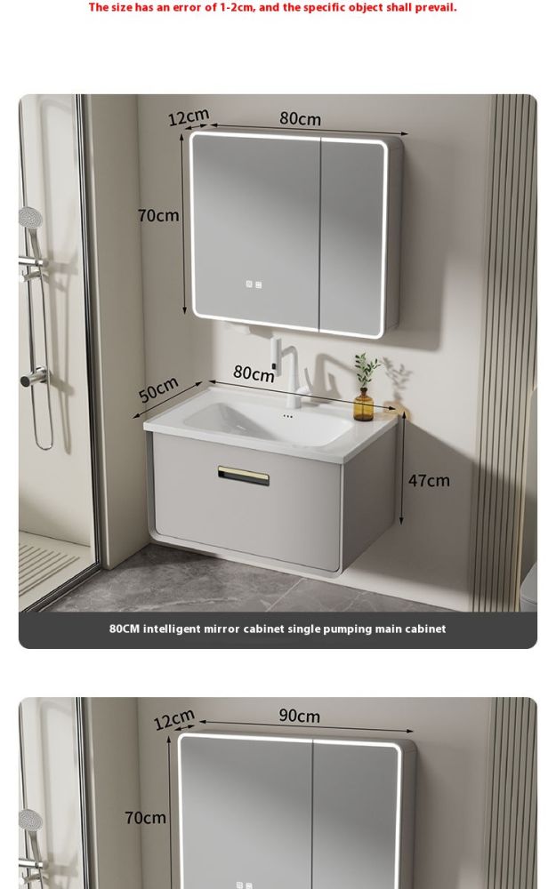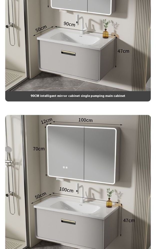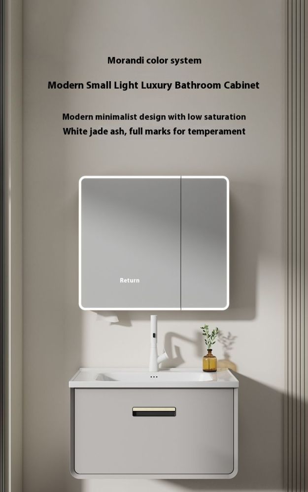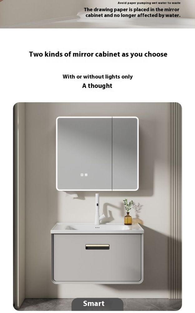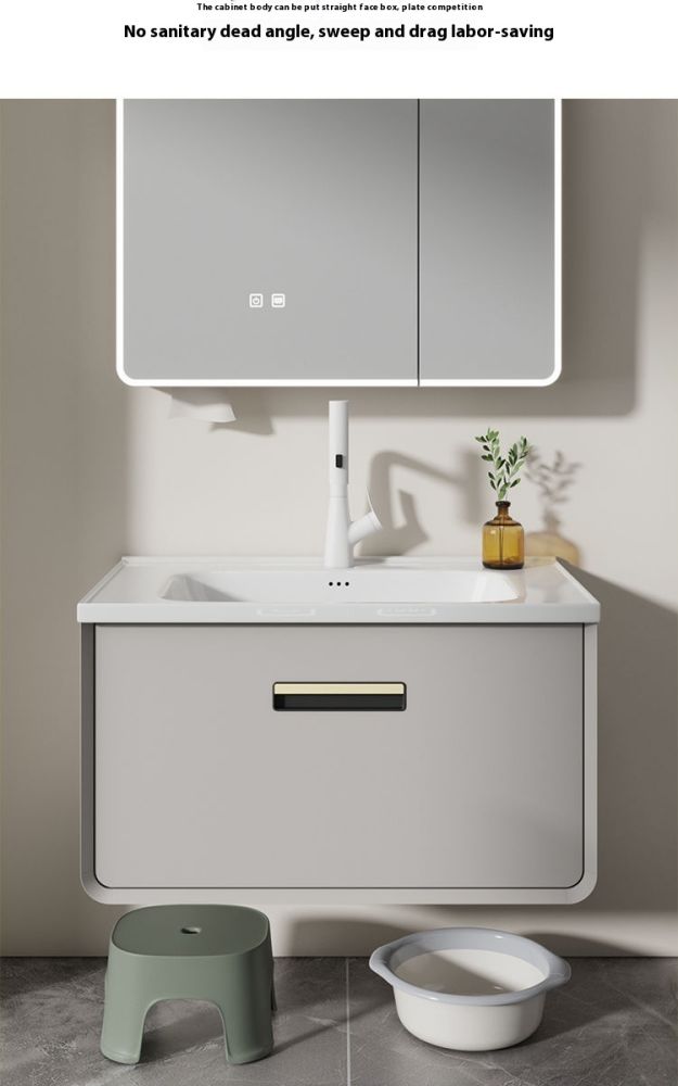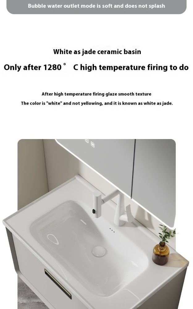 QW- Aluminum Thickened Stainless Steel Basin Smart Glass Bathroom Storage Cabinet