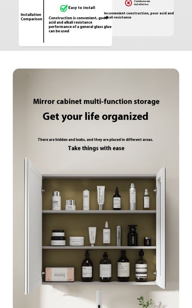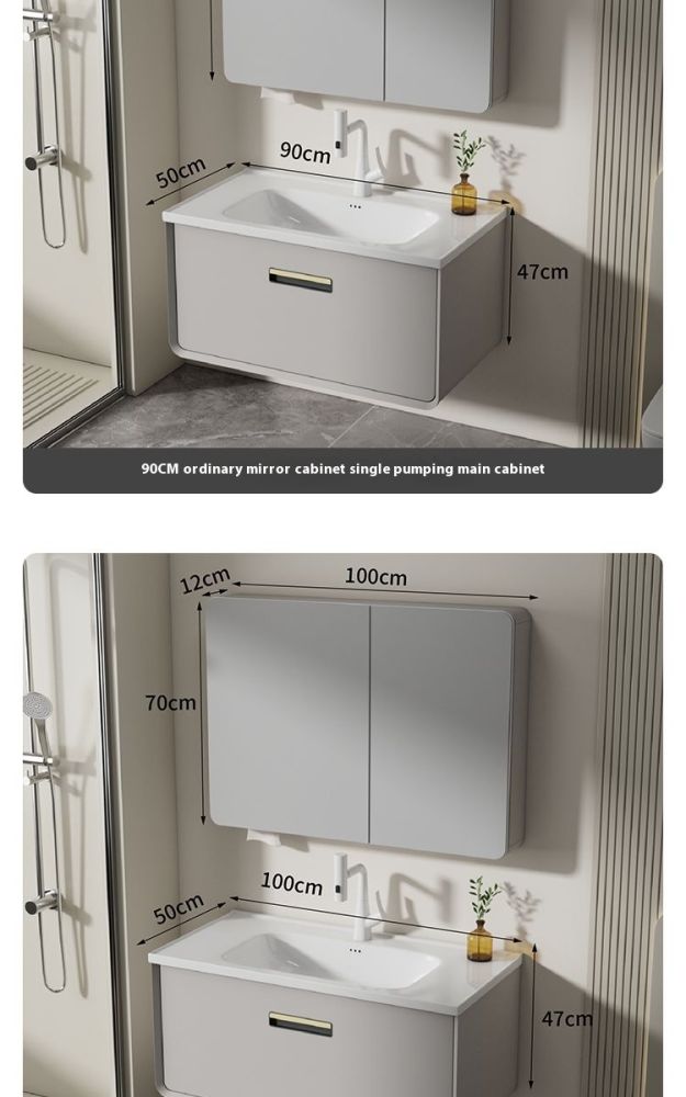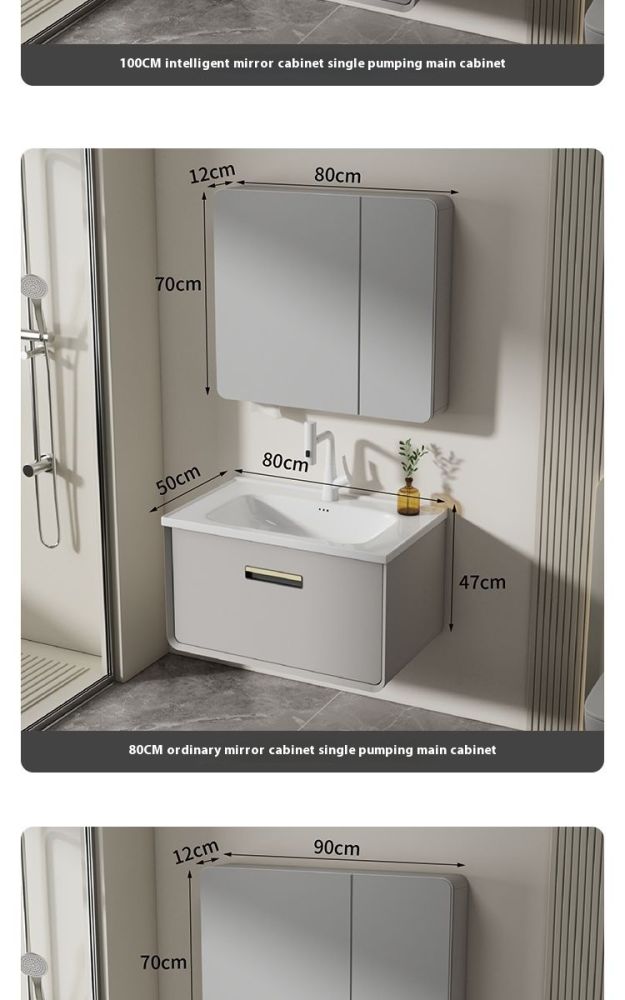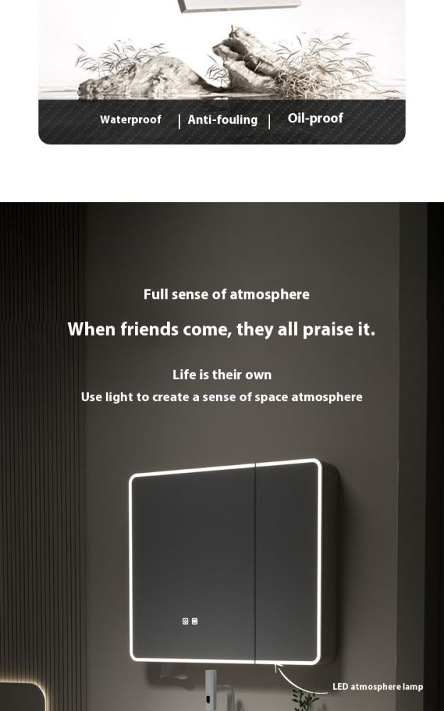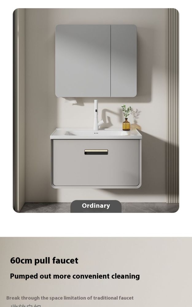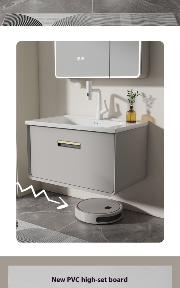 QW- Aluminum Thickened Stainless Steel Basin Smart Glass Bathroom Storage Cabinet
