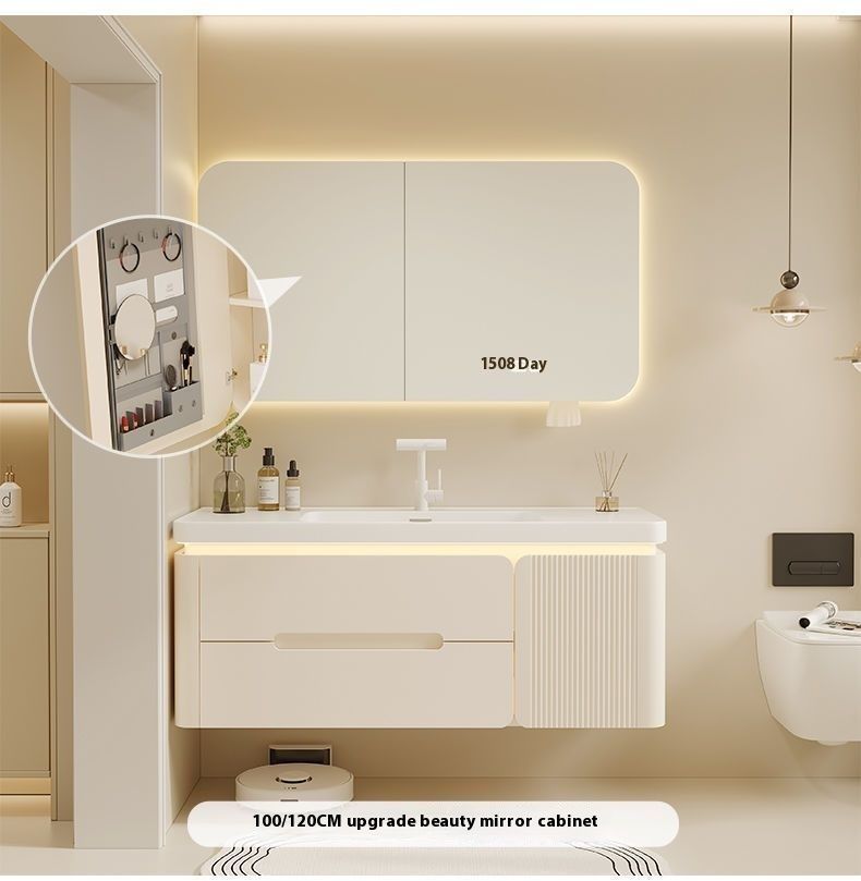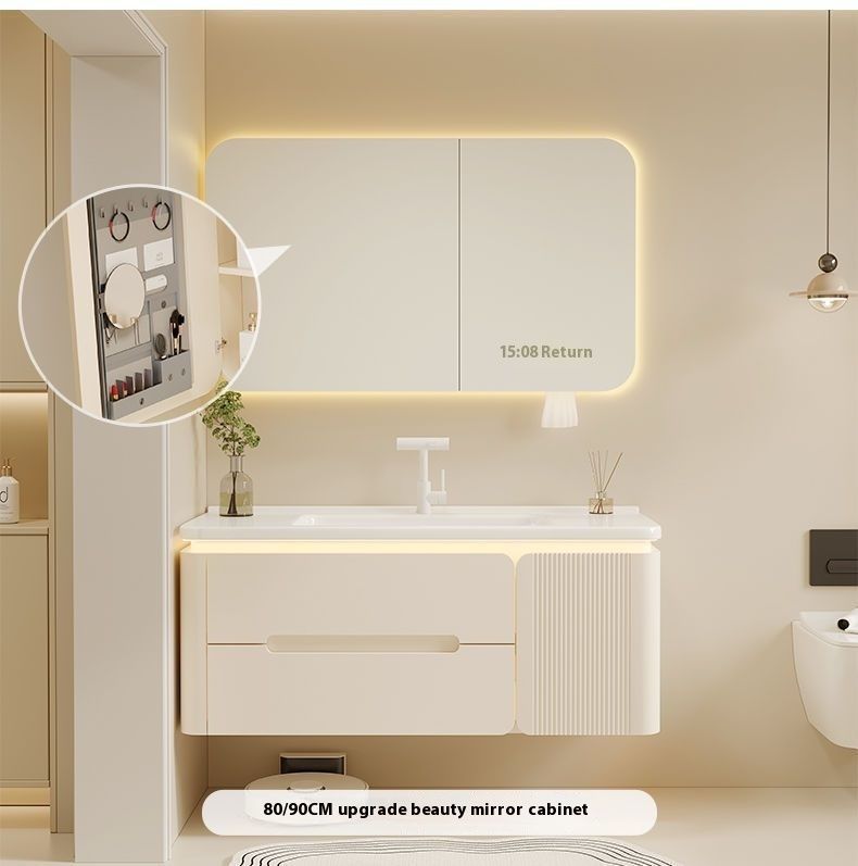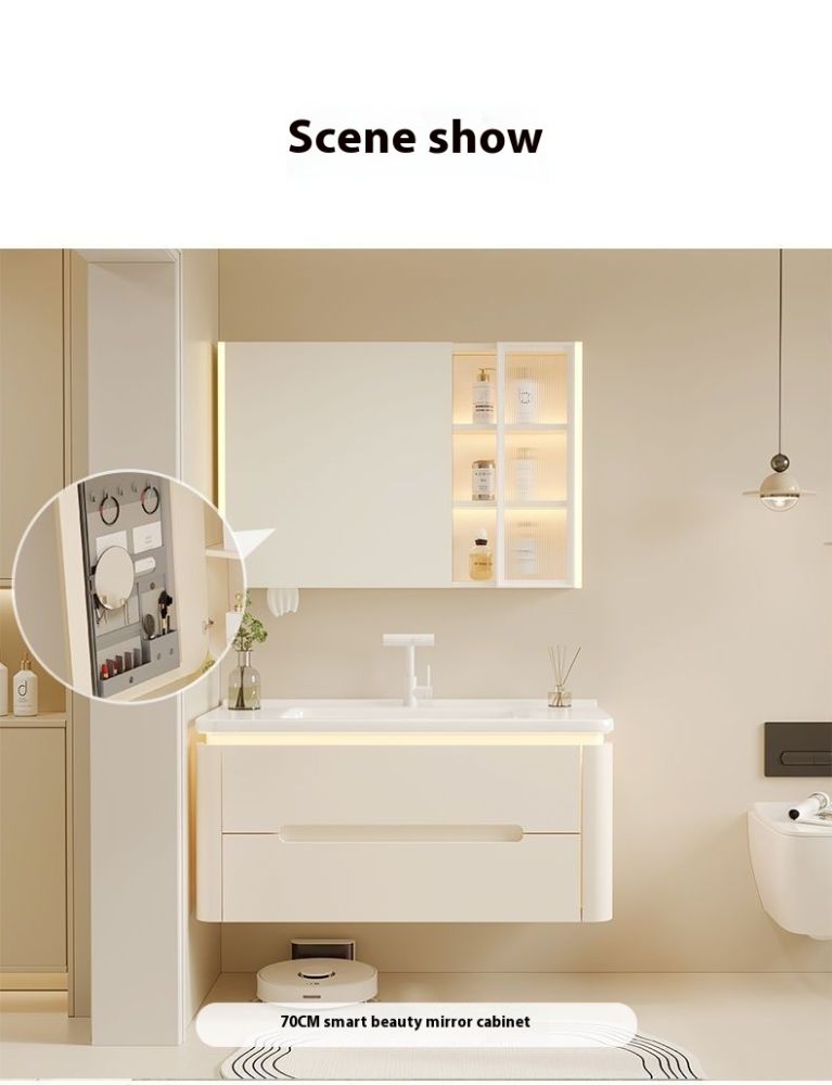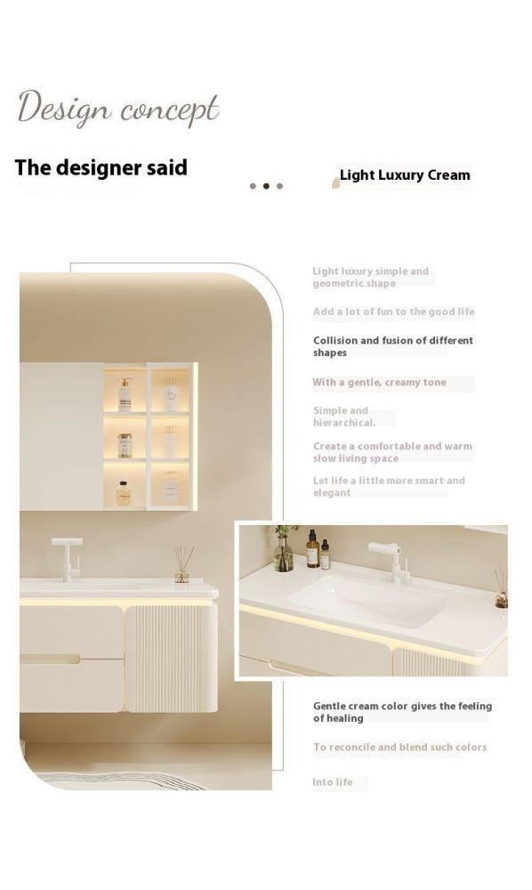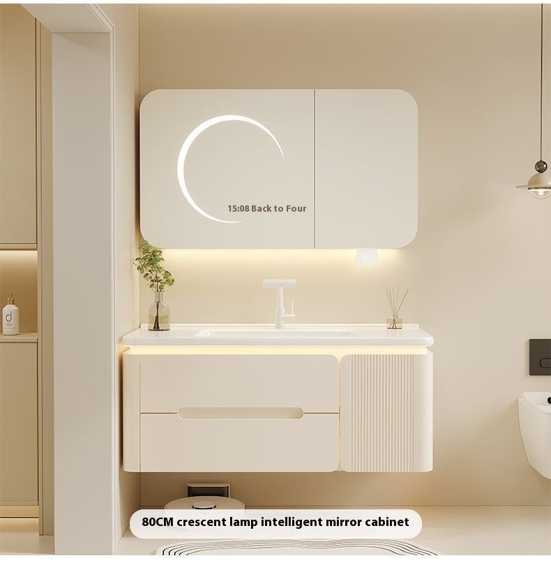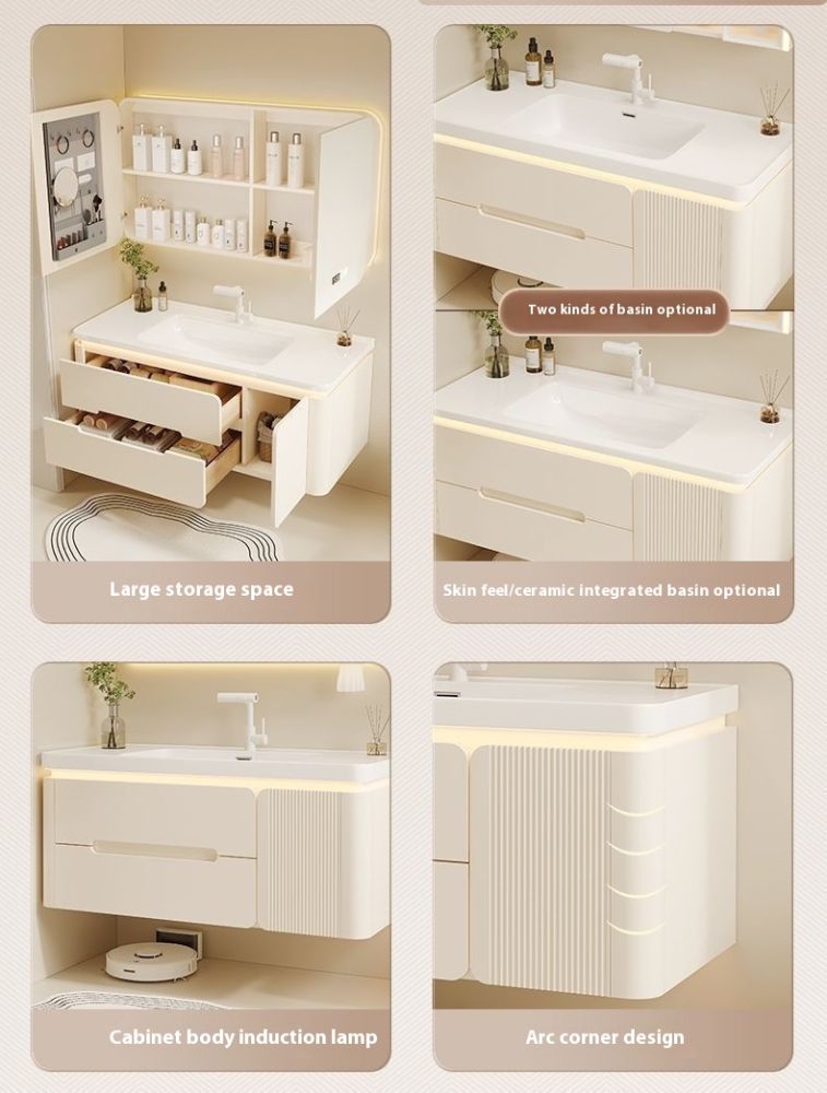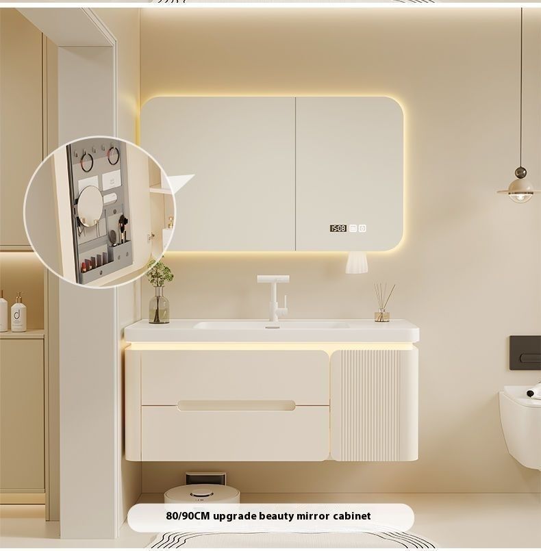 QW- Cream Color Storage Smart Glass Cabinet Bathroom Basin