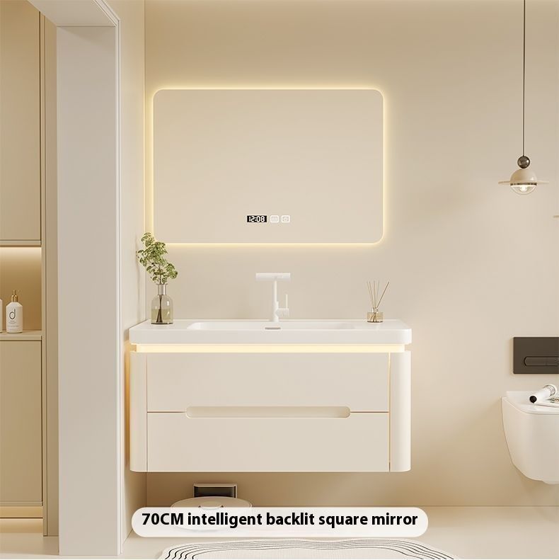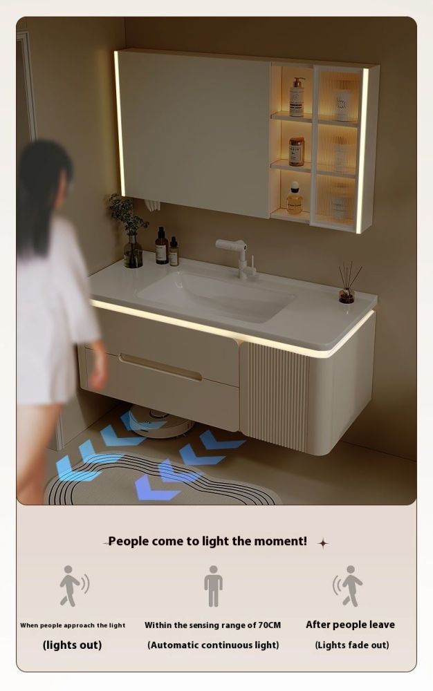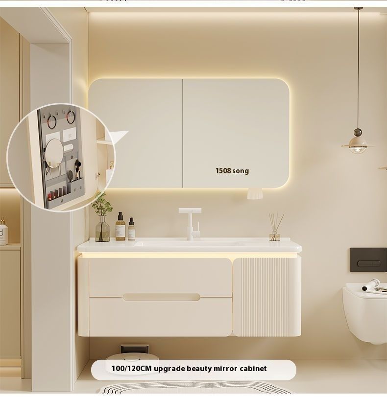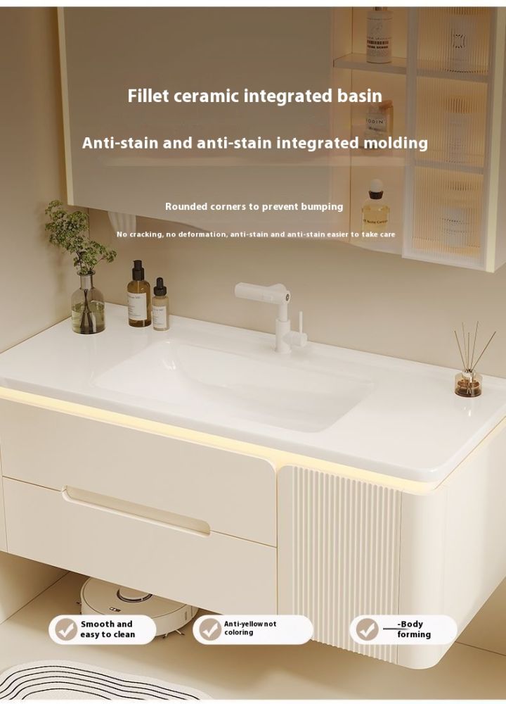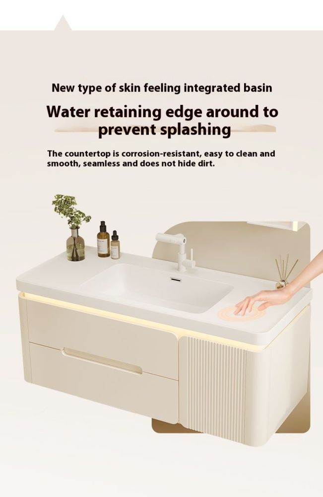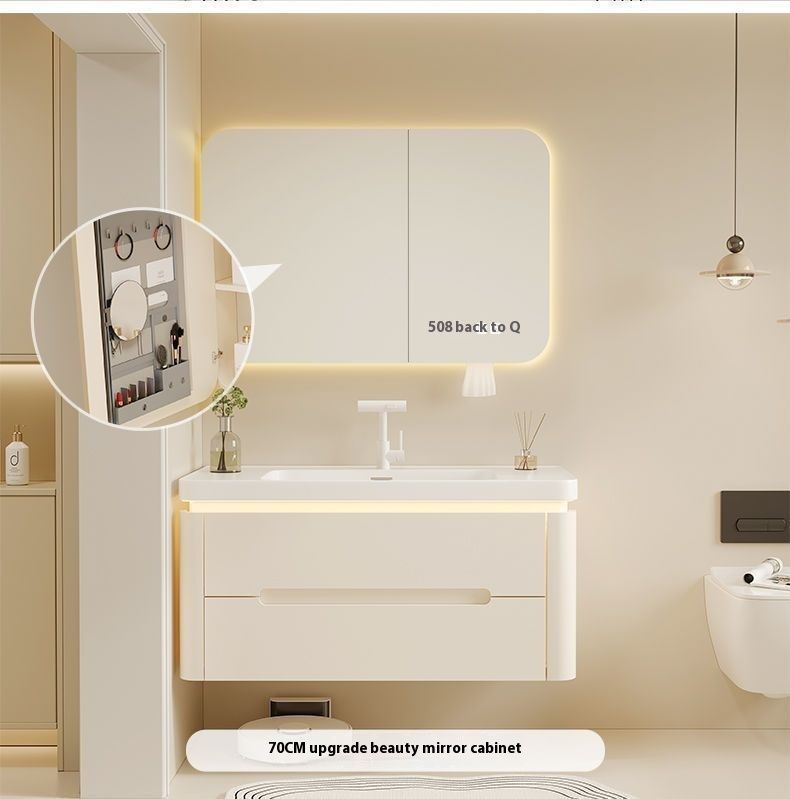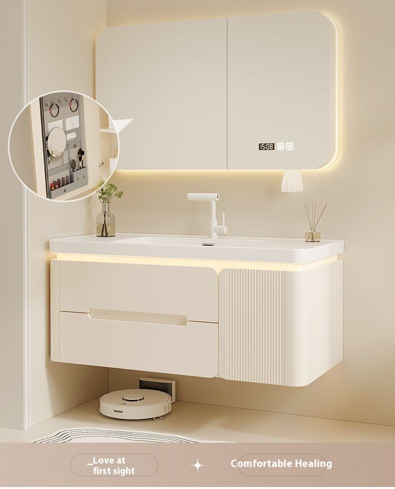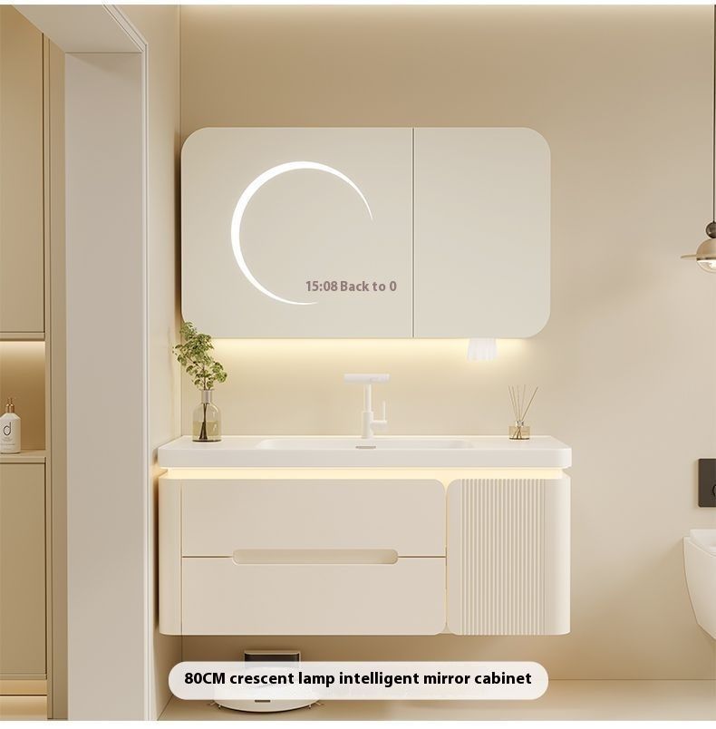QW- Cream Color Storage Smart Glass Cabinet Bathroom Basin