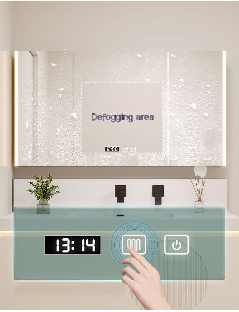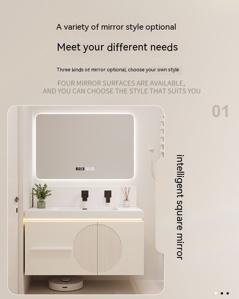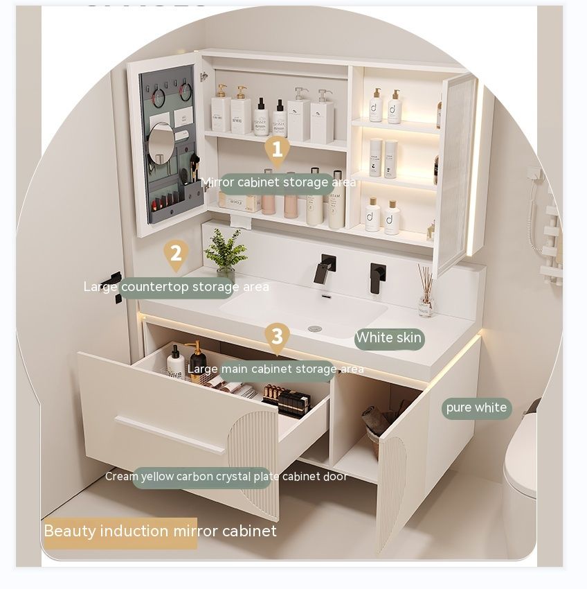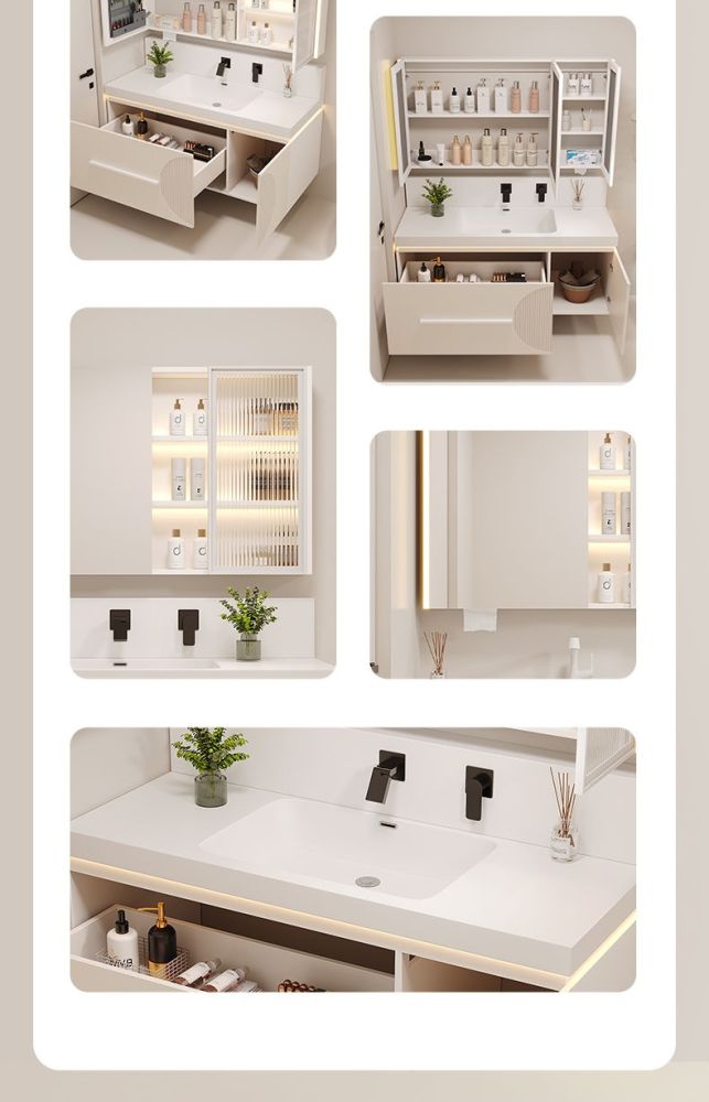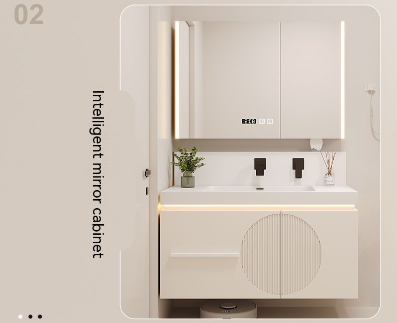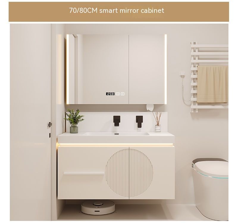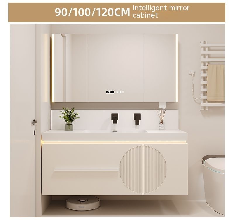 QW- Cream Style Smart Mirror Cabinet for Bathroom, Storage Cabinet, Bathroom Sink Set