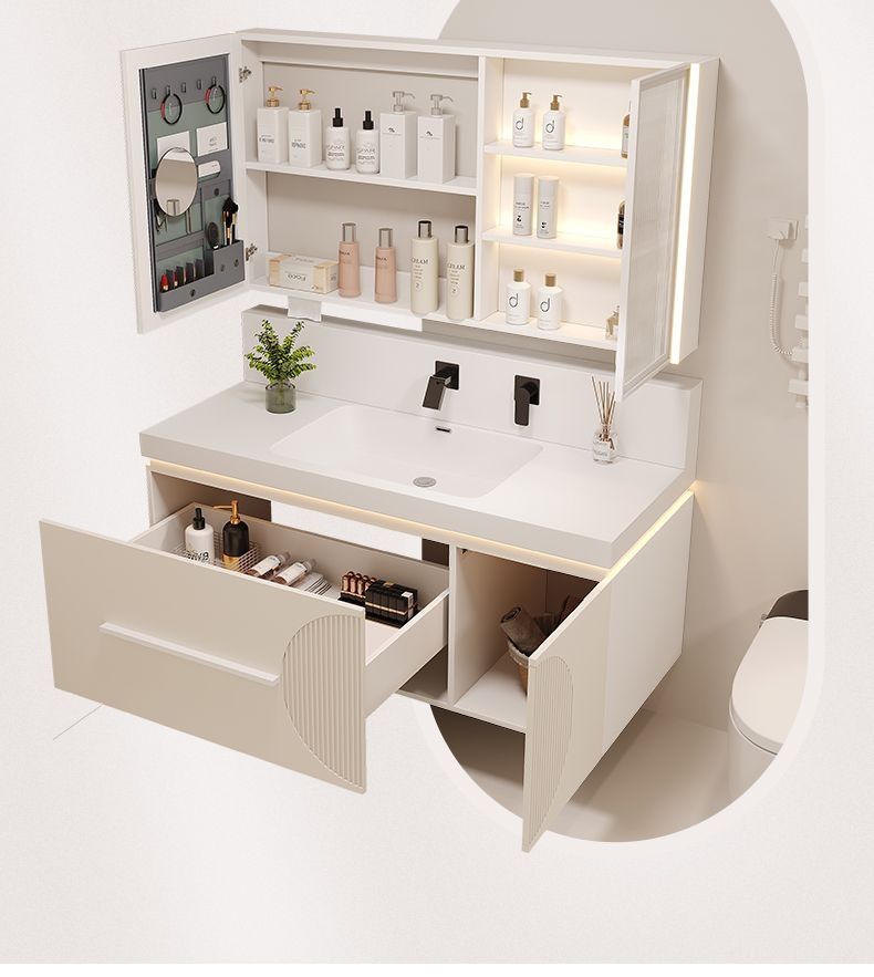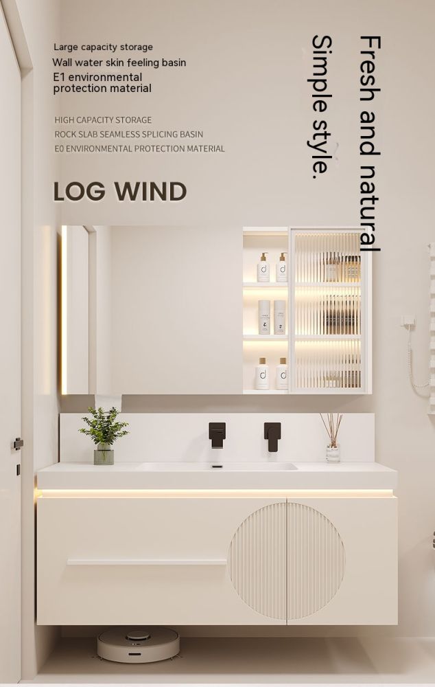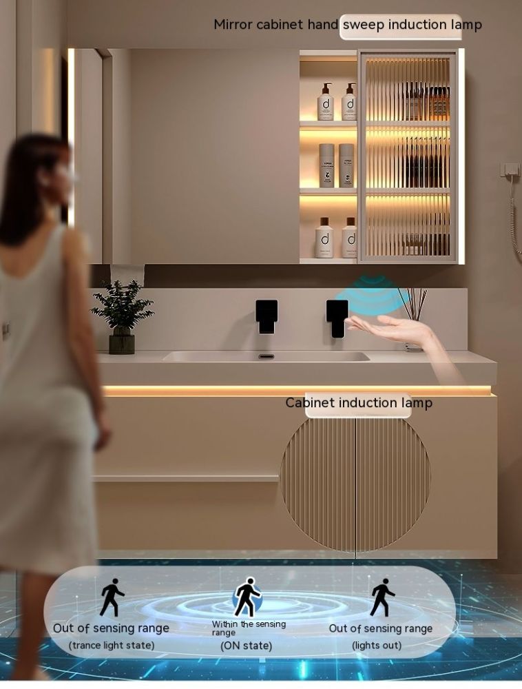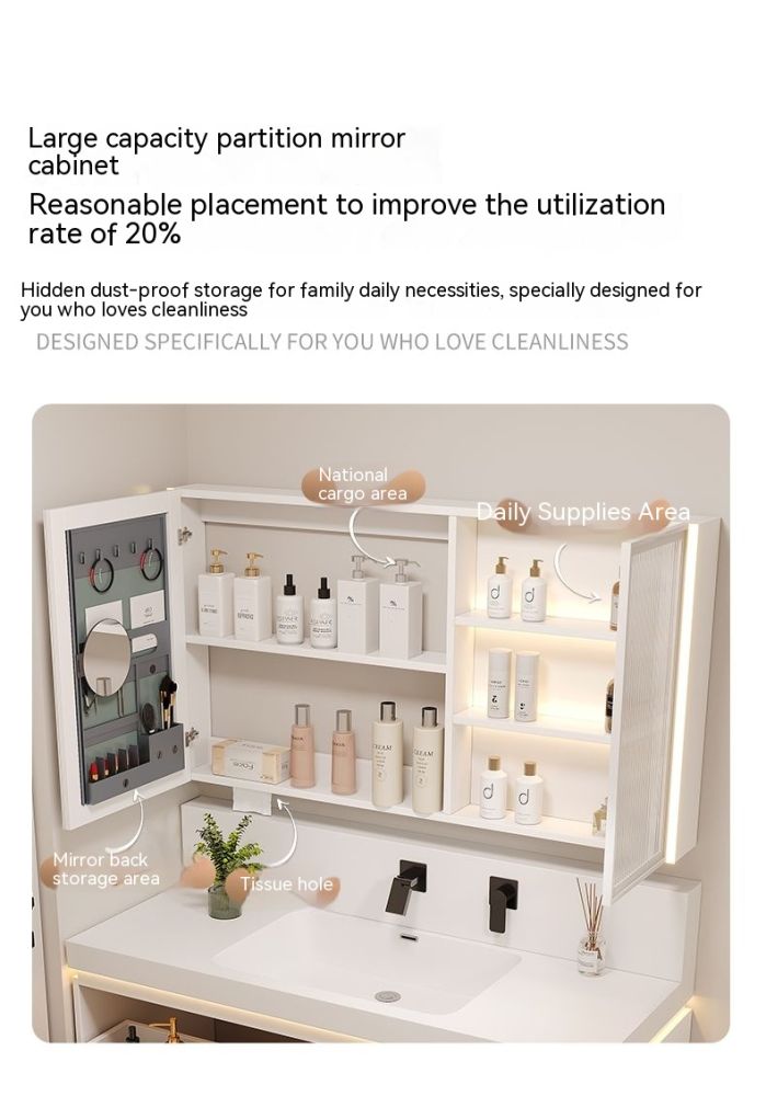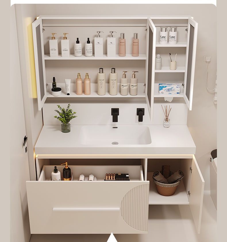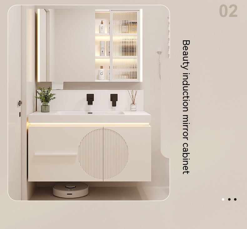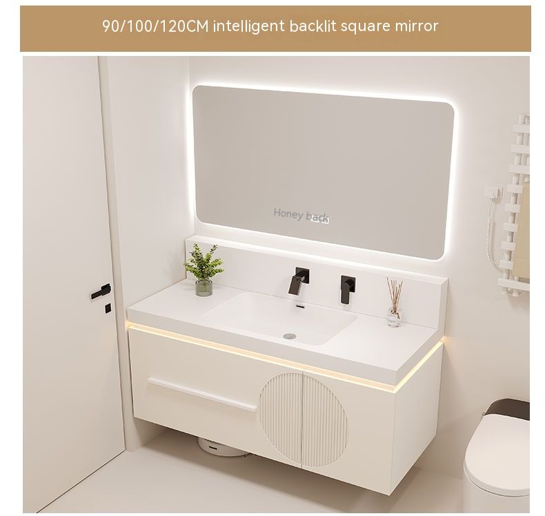 QW- Cream Style Smart Mirror Cabinet for Bathroom, Storage Cabinet, Bathroom Sink Set