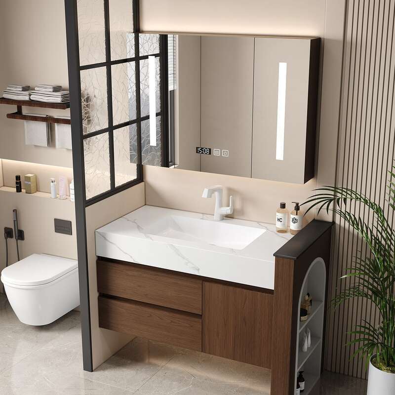 QW- Custom-made Real Wood Storage Smart Mirror Cabinet for Bathroom, Bathroom Sink Set loading