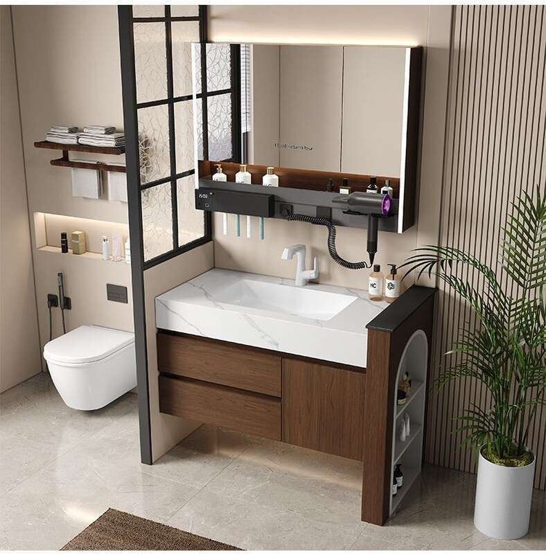 • QW- Custom-made Real Wood Storage Smart Mirror Cabinet for Bathroom, Bathroom Sink Set