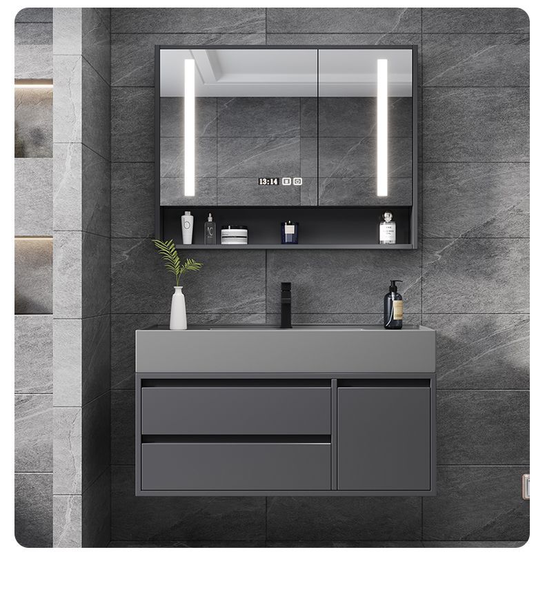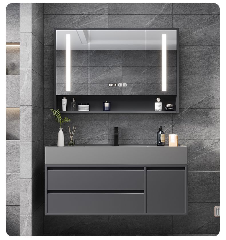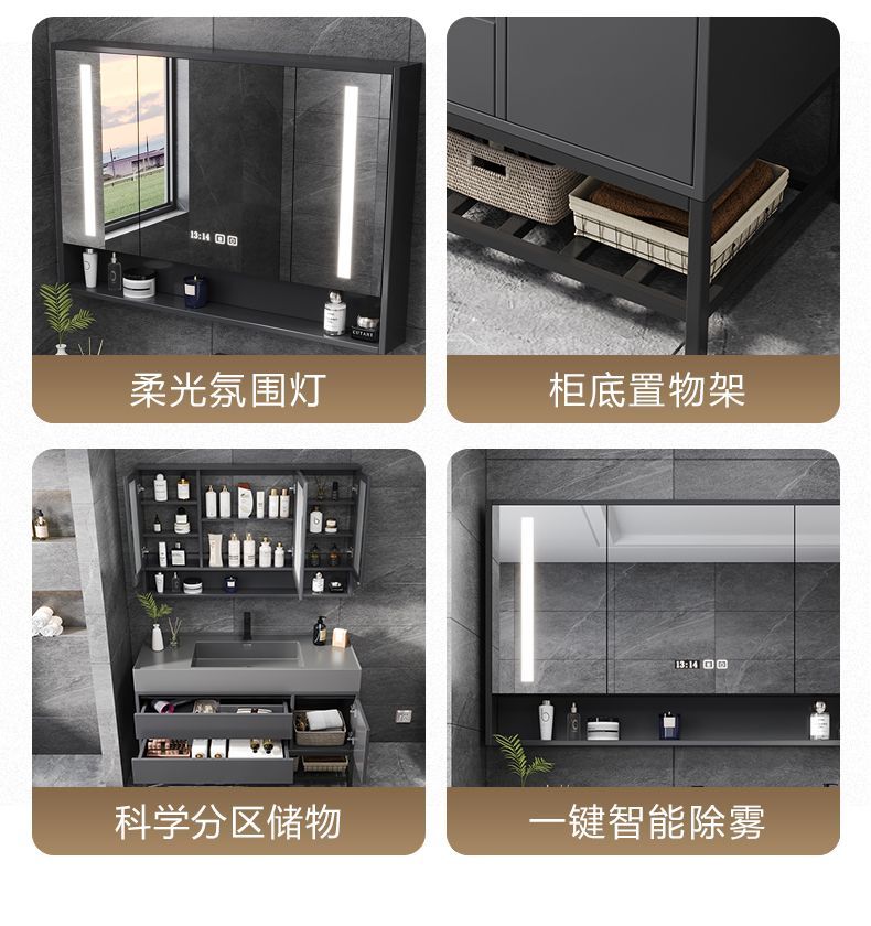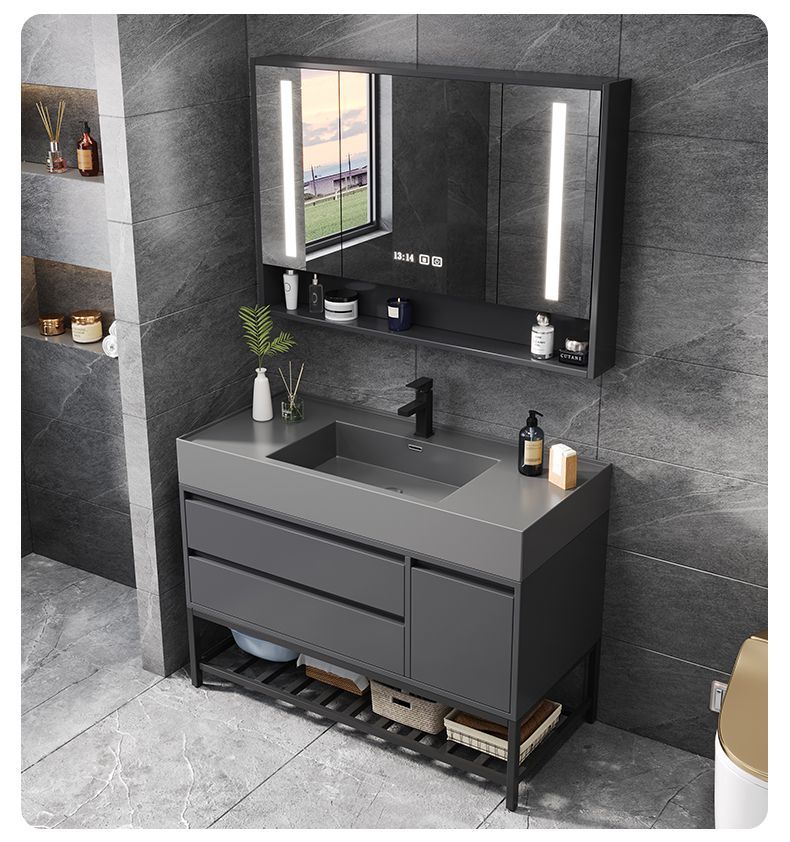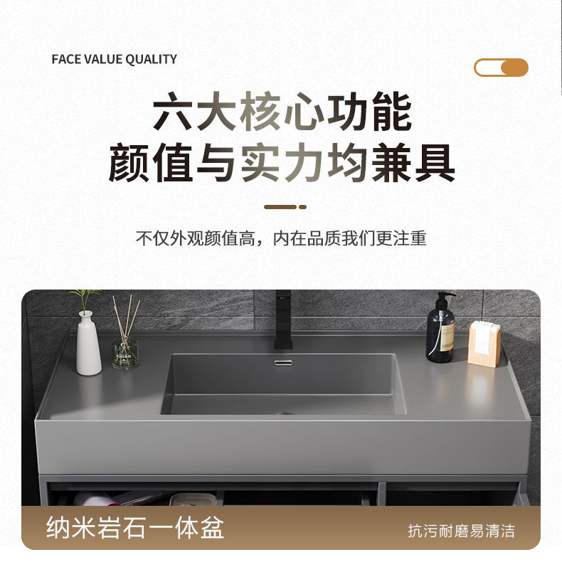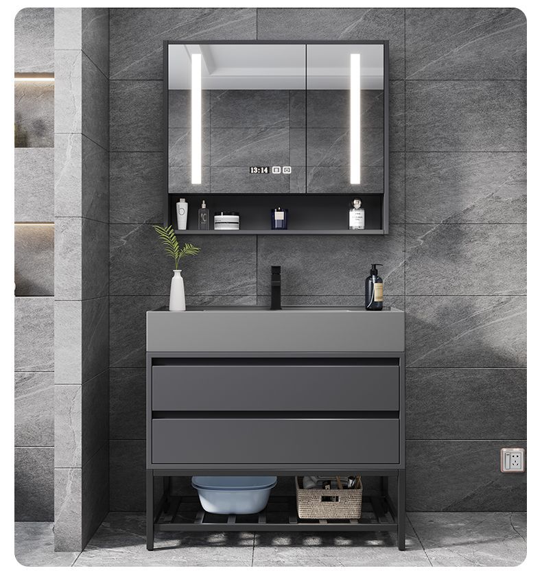 QW- Floor-mounted Basin Smart Mirror Real Wood Storage Cabinet in Bathroom