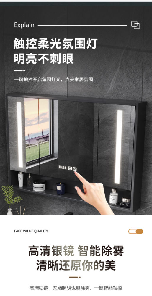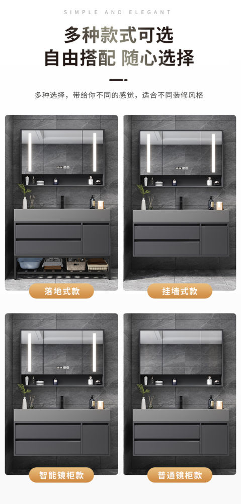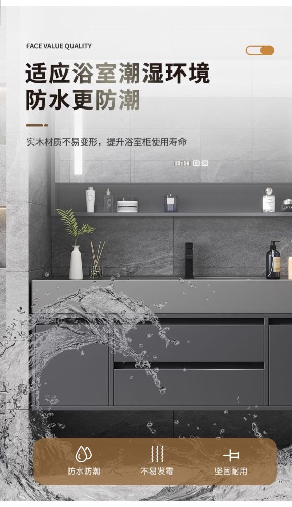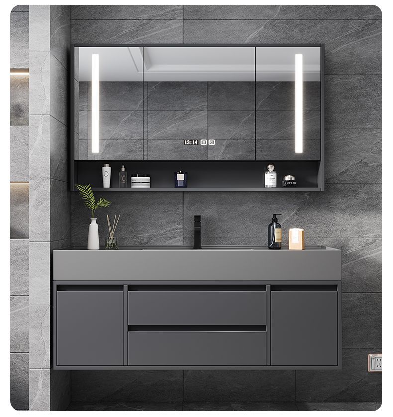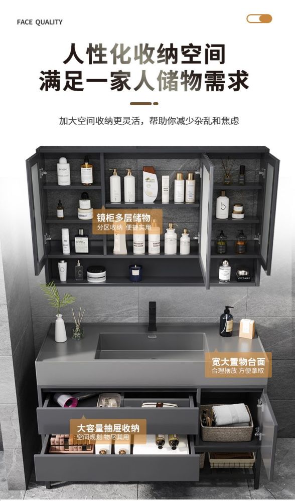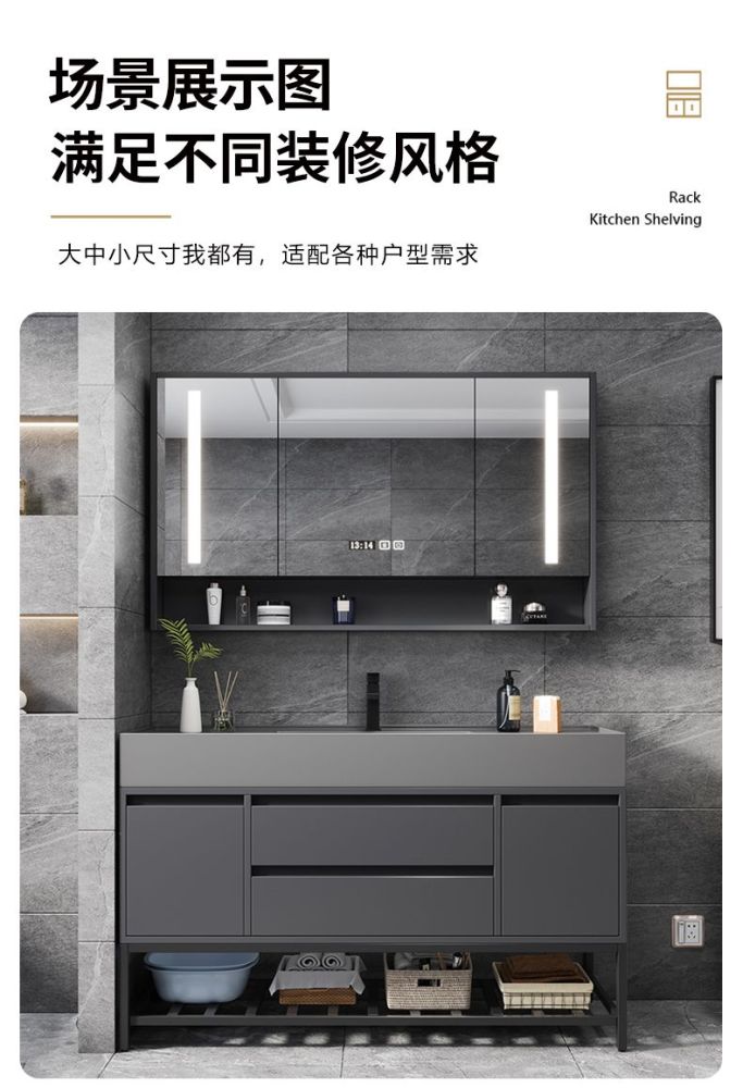 QW- Floor-mounted Basin Smart Mirror Real Wood Storage Cabinet in Bathroom