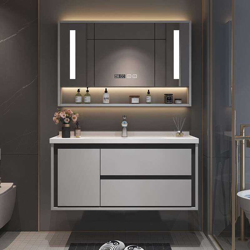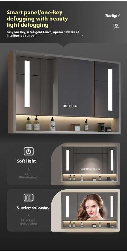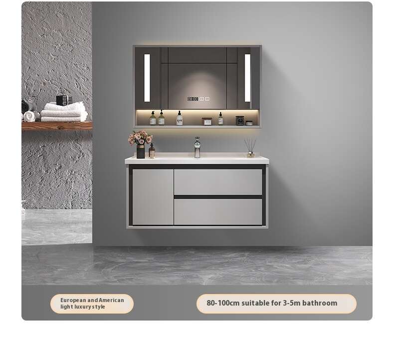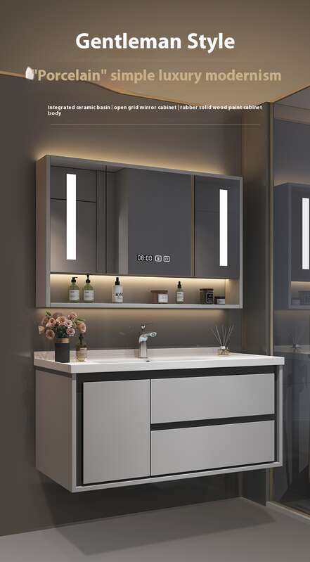 QW- Oak Wood Storage Cabinet Smart Mirror Sink Set in the Bathroom