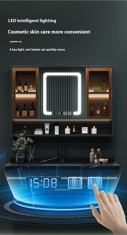 • QW- Real wood storage cabinet smart mirror in the bathroom, bathroom sink
