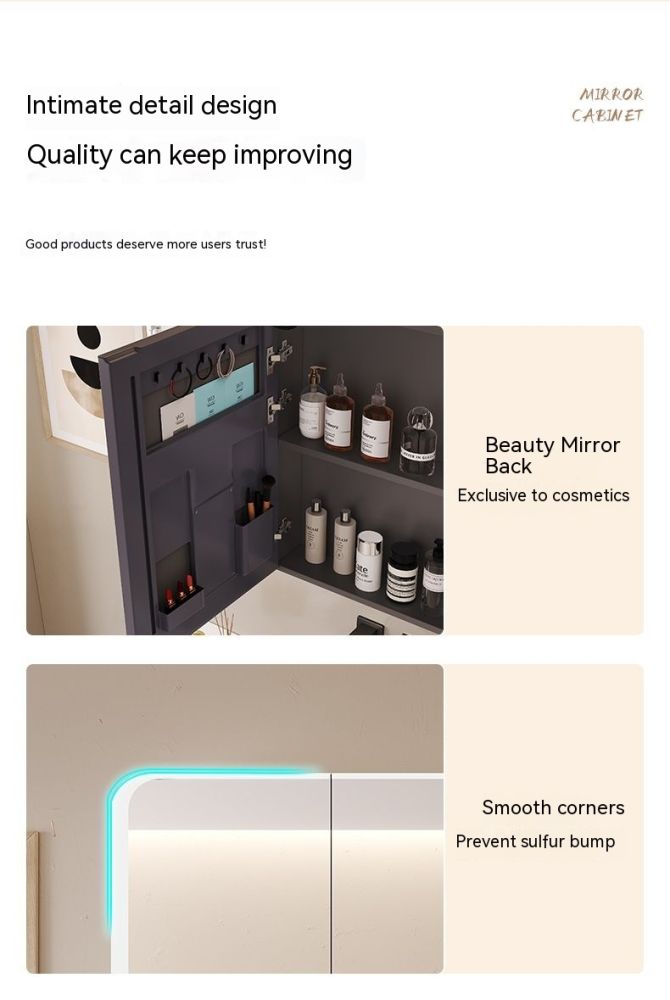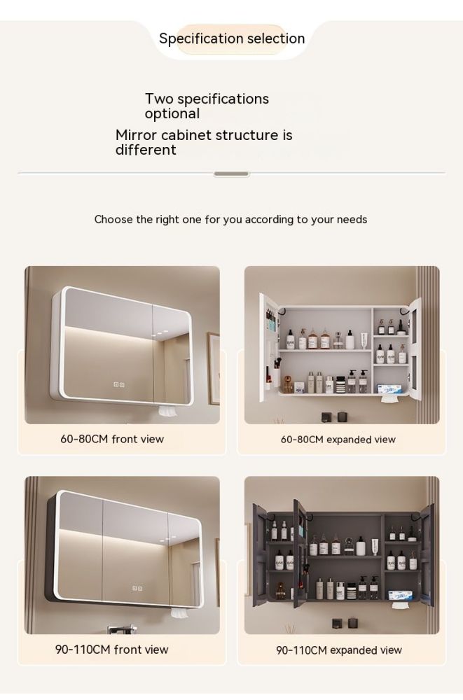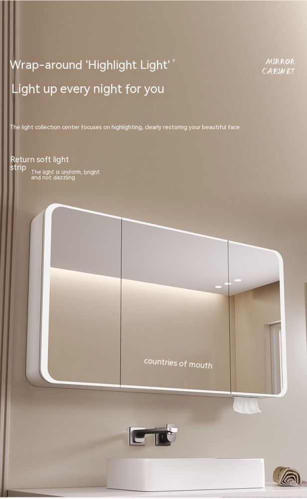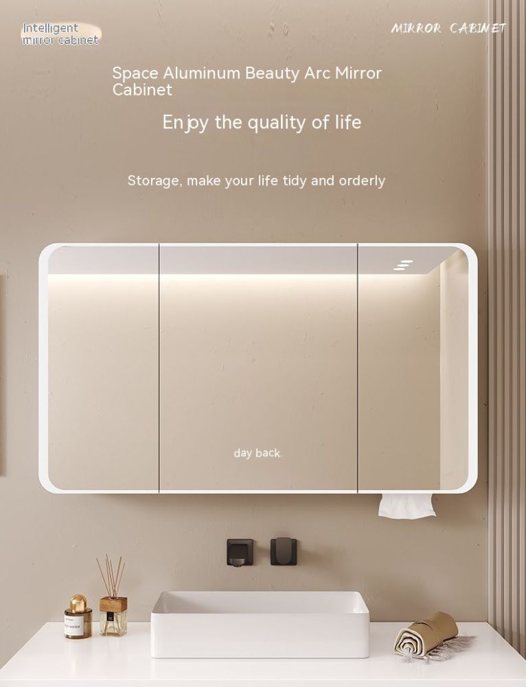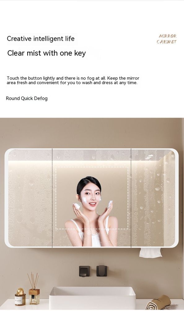 QW- Smart Mirror Cabinet Bathroom Aluminum Metal Can Display Time and Clear Fog