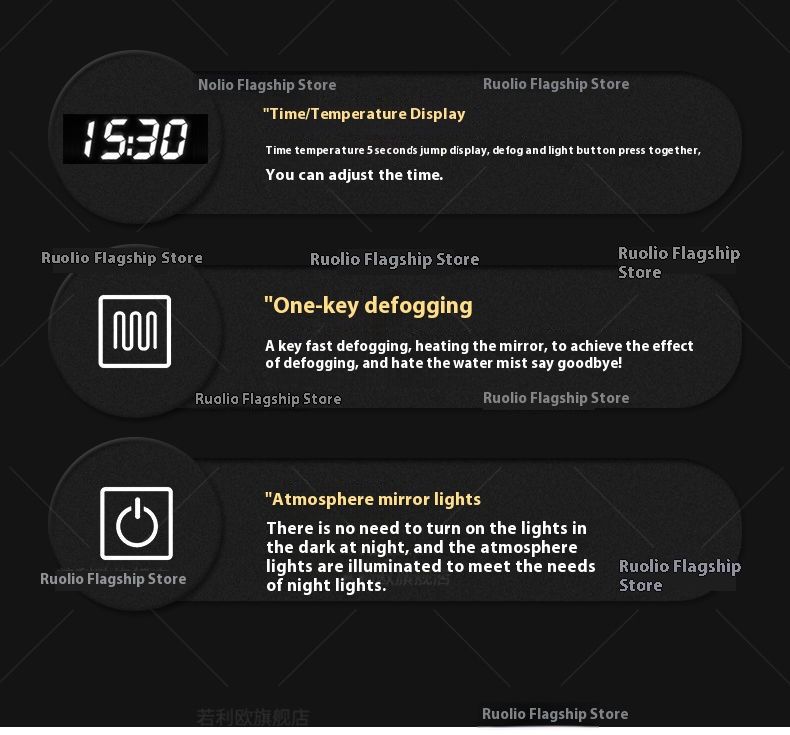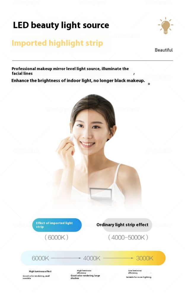 Acacia Wood Half Mirror Light Luxury Plus Three Color Variable Light:Acacia wood half mirror light luxury plus three color variable light+defogging