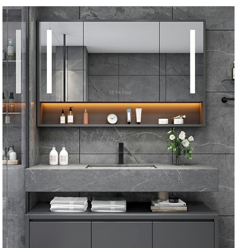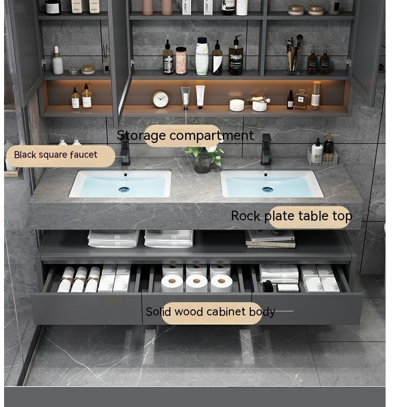 QW- Solid Wood Smart Glass Cabinet, Bathroom Sink