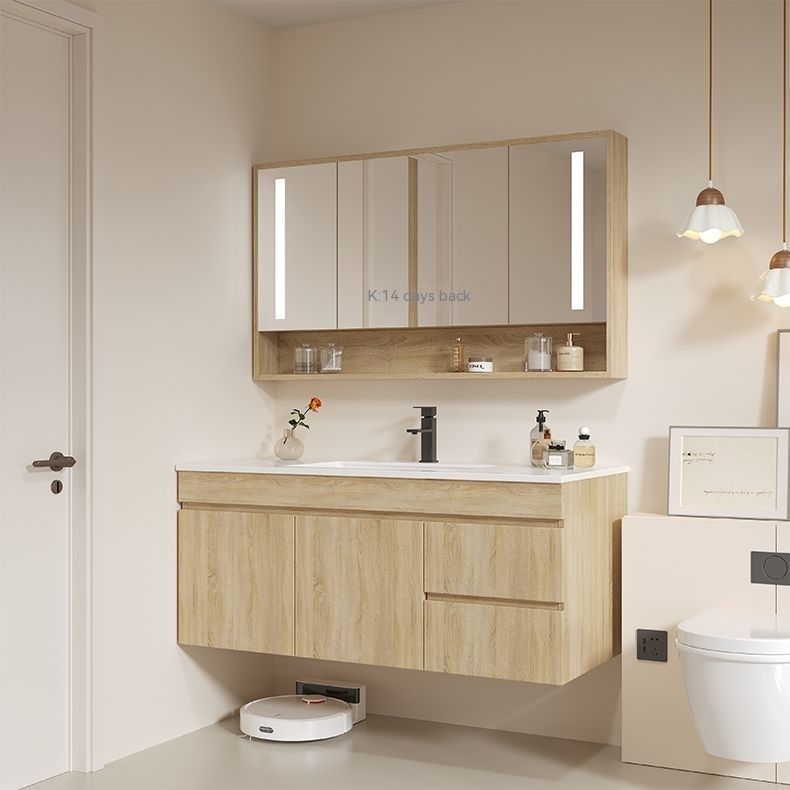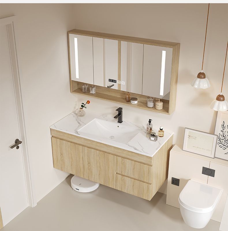 QW- Solid Wood Storage Smart Mirror Cabinet Bathroom Hand Washing Stone