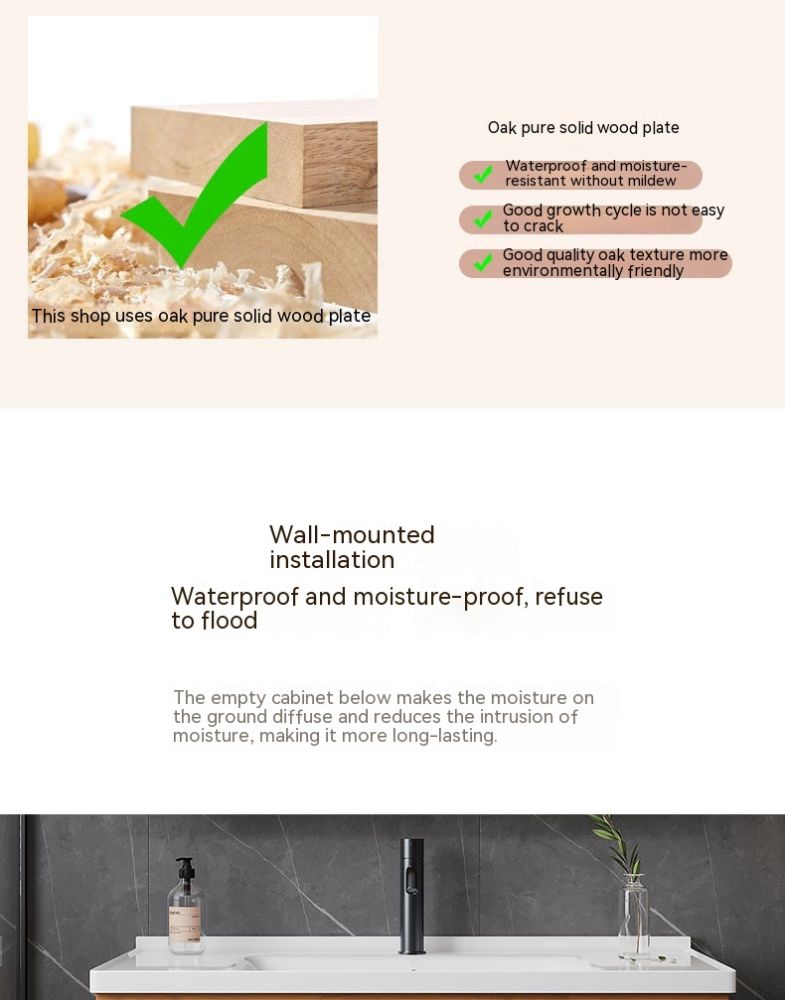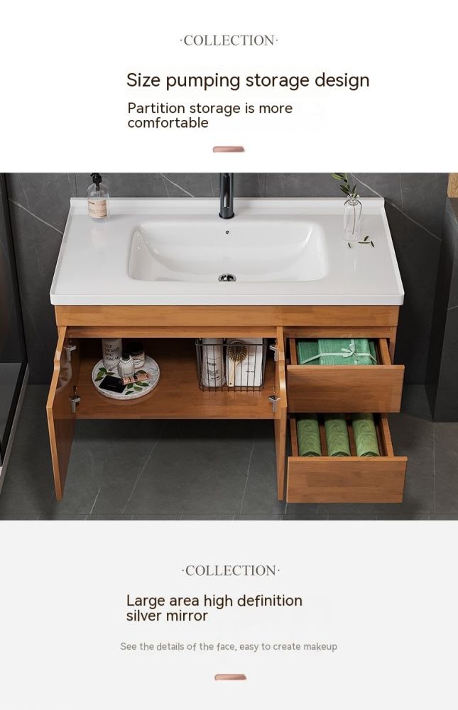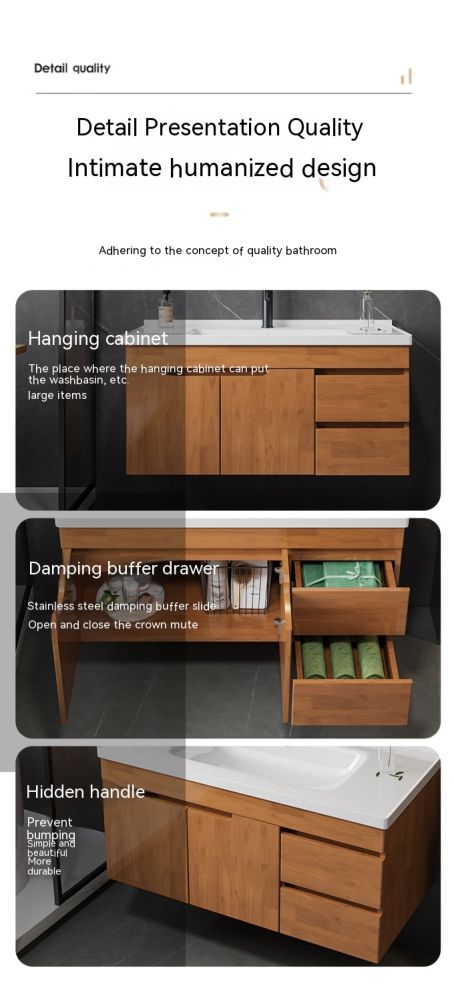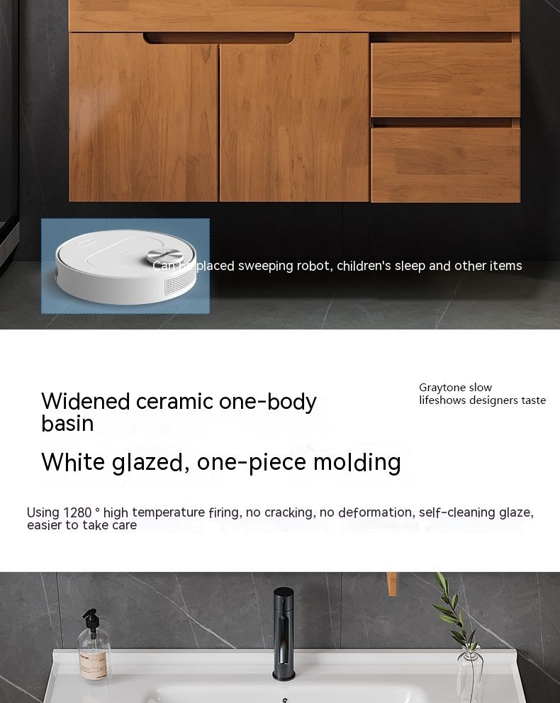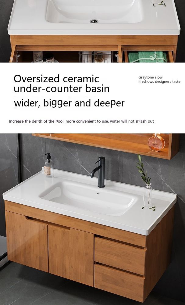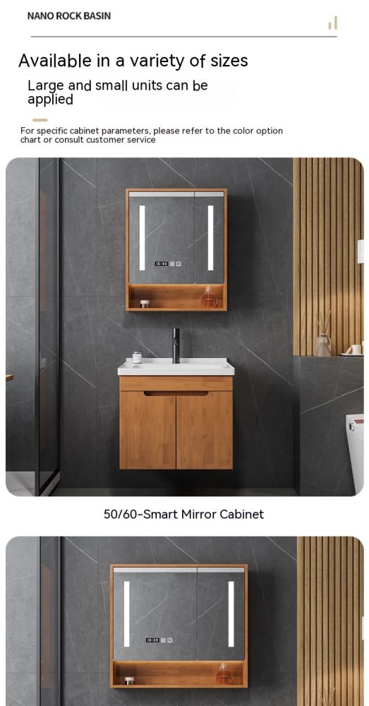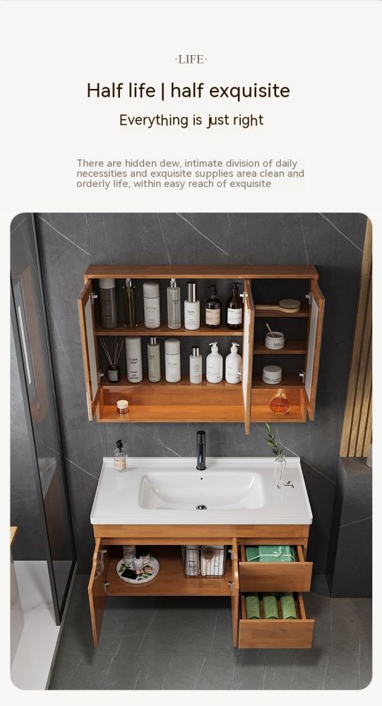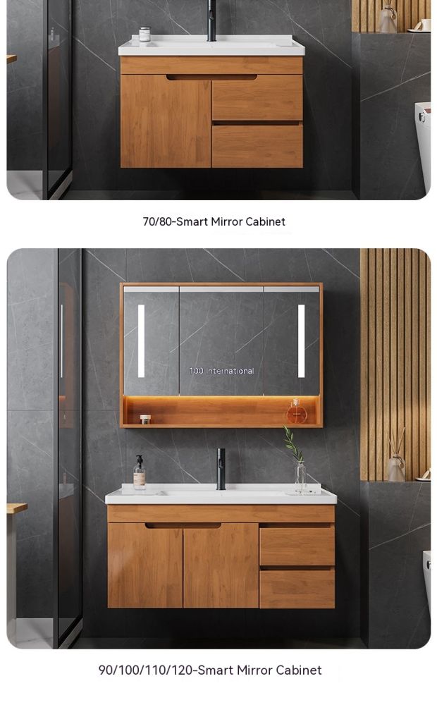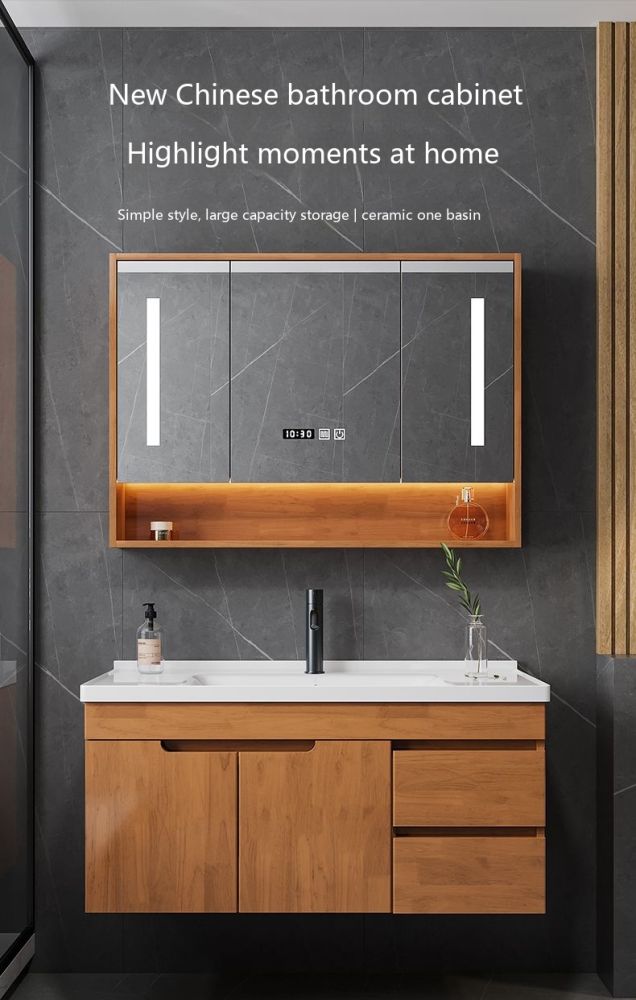 QW- Solid Wood Storage Smart Glass Cabinet Bathroom Sink