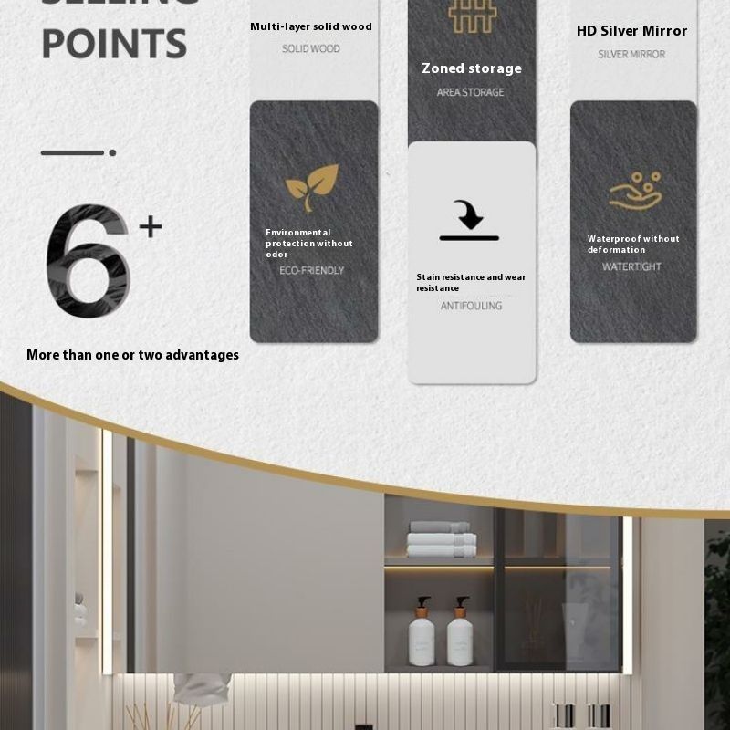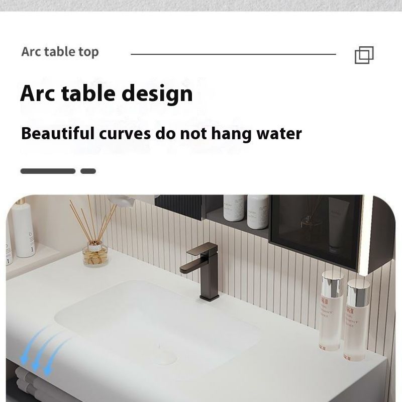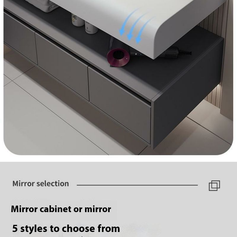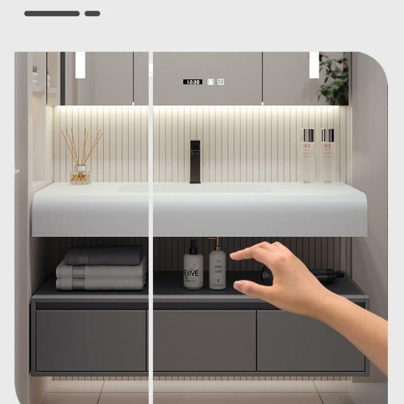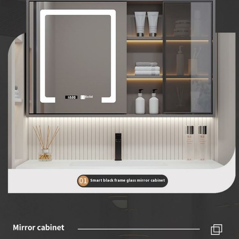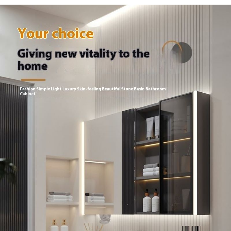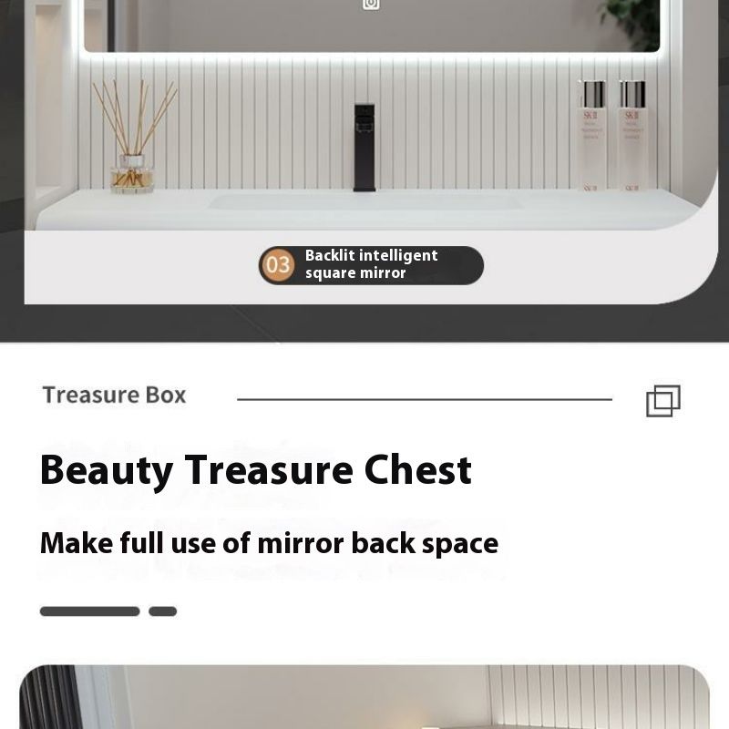 QW- Solid Wood Storage Smart Mirror Cabinet Bathroom Hand Washing Stone