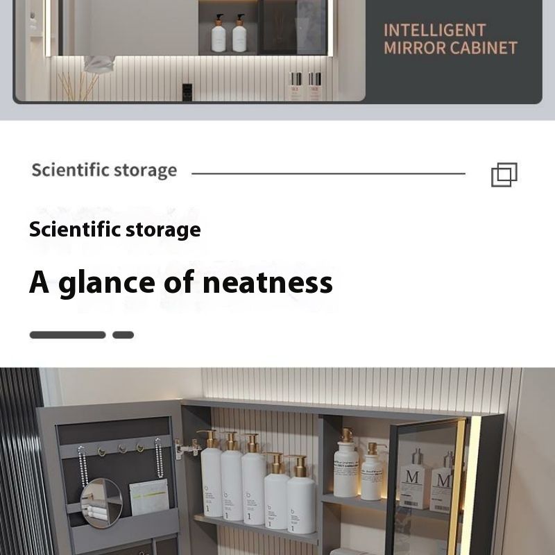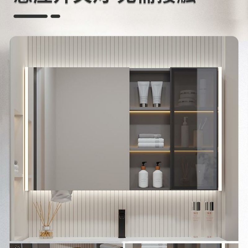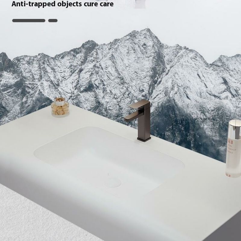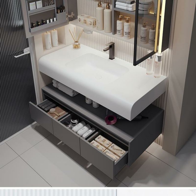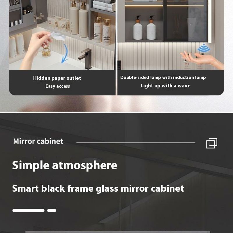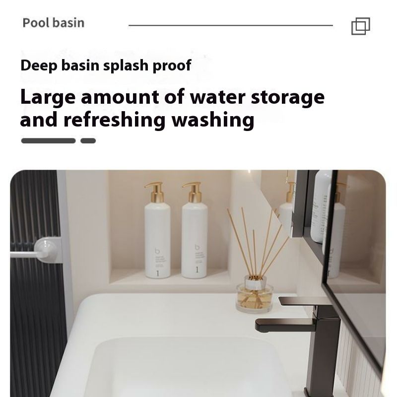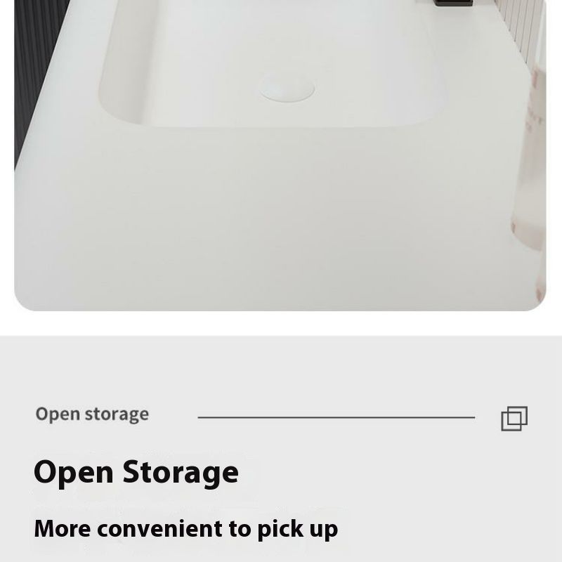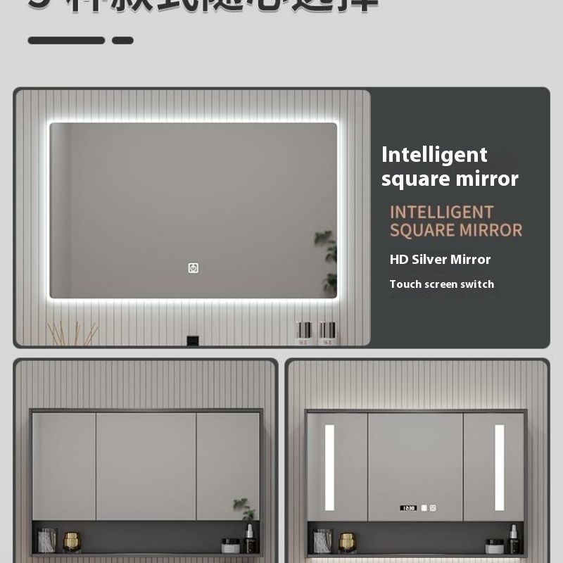 QW- Solid Wood Storage Smart Mirror Cabinet Bathroom Hand Washing Stone