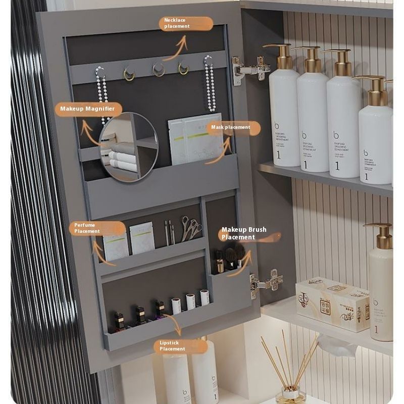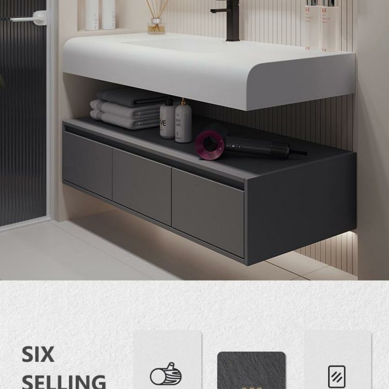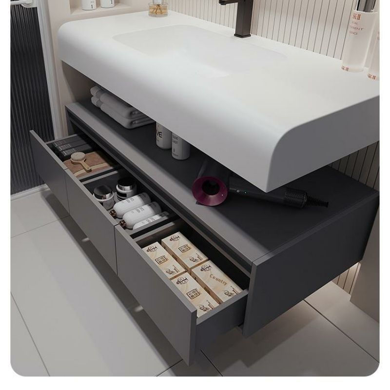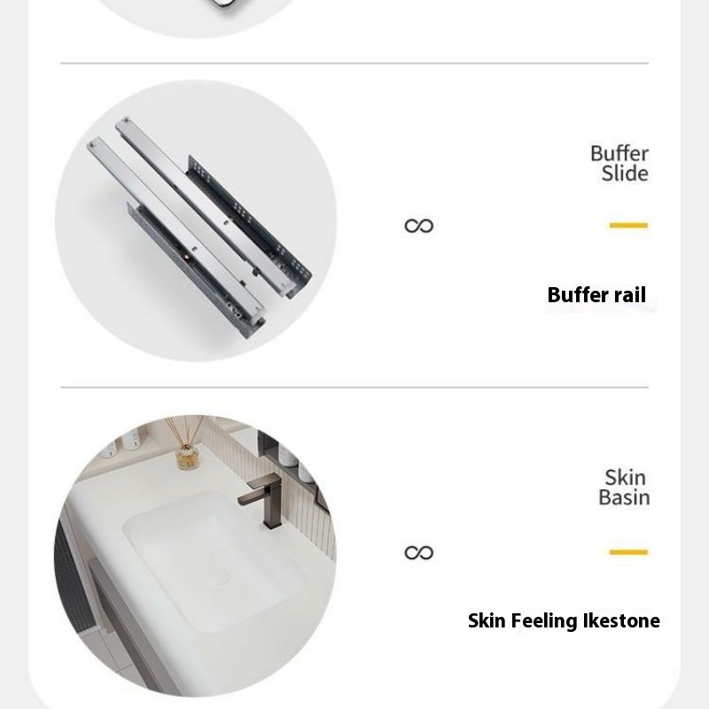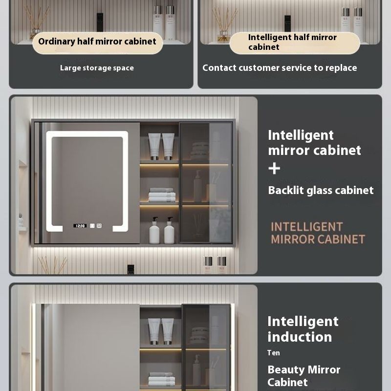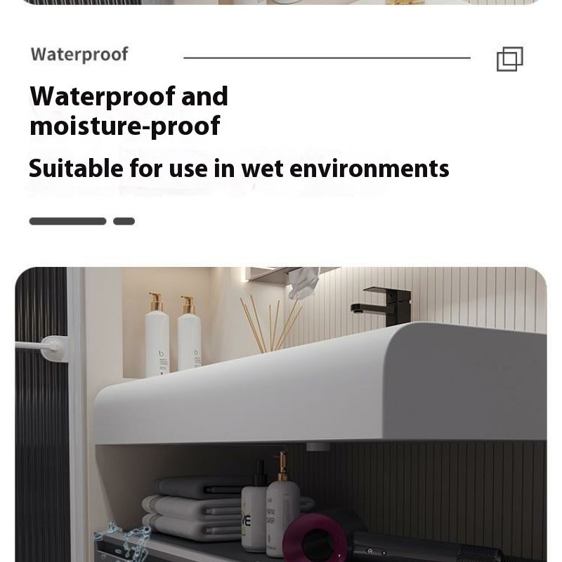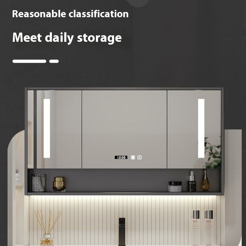 QW- Solid Wood Storage Smart Mirror Cabinet Bathroom Hand Washing Stone