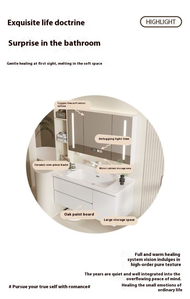 QW- Solid Wood Storage Smart Mirror Cabinet Bathroom Sink Set QW- Solid Wood Storage Smart Mirror Cabinet Bathroom Sink Set