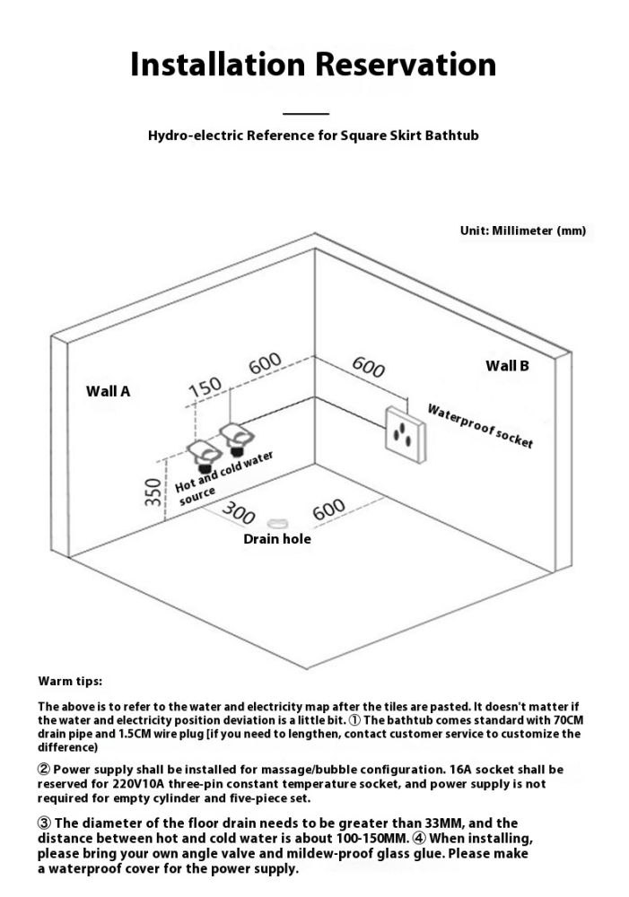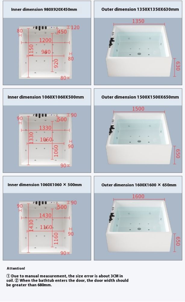 • QW- Square Acrylic Heated Bathtub, Massage and Travel Bathtub