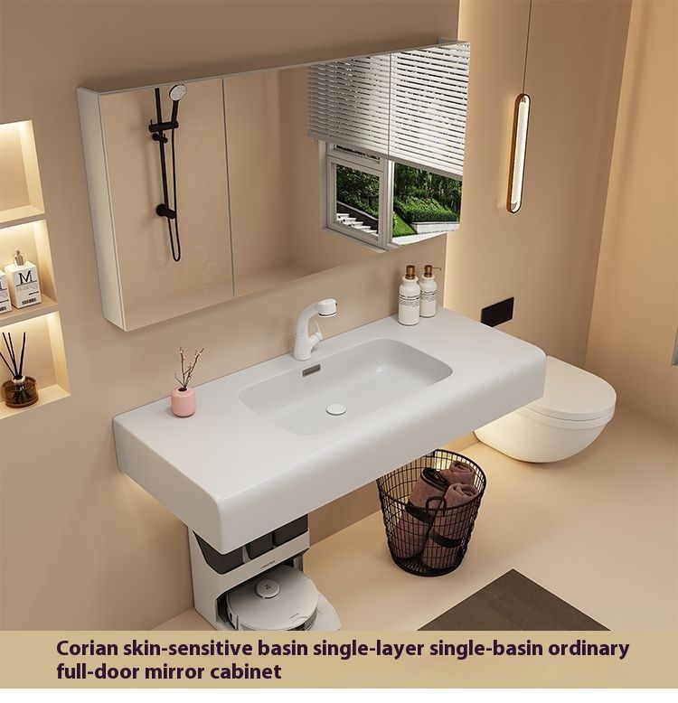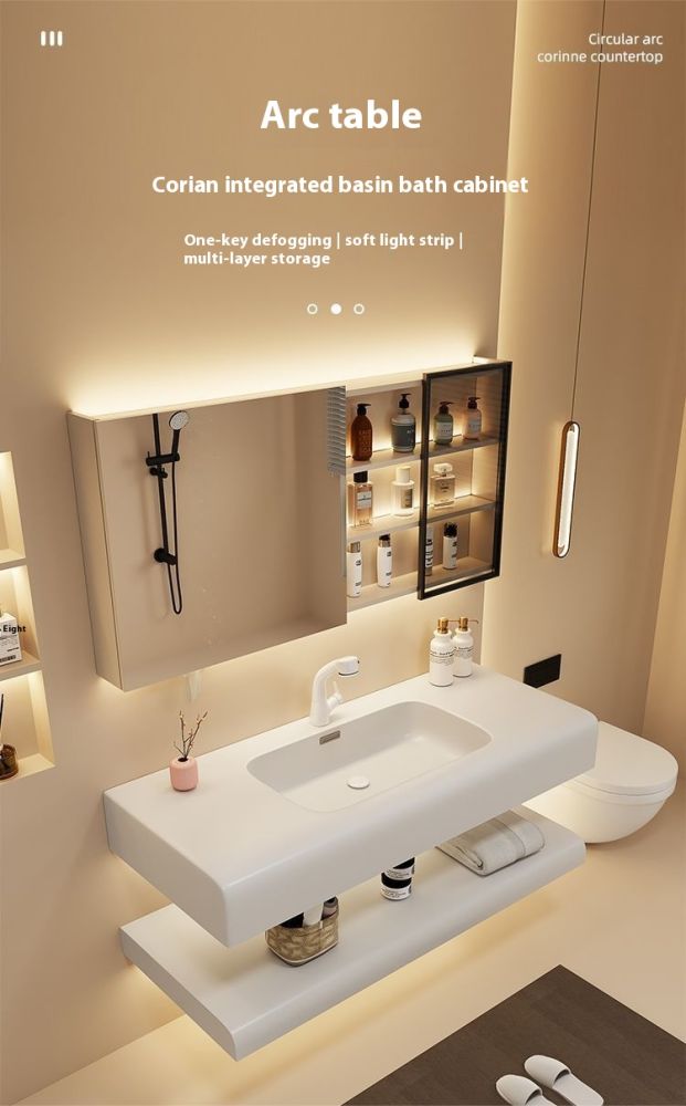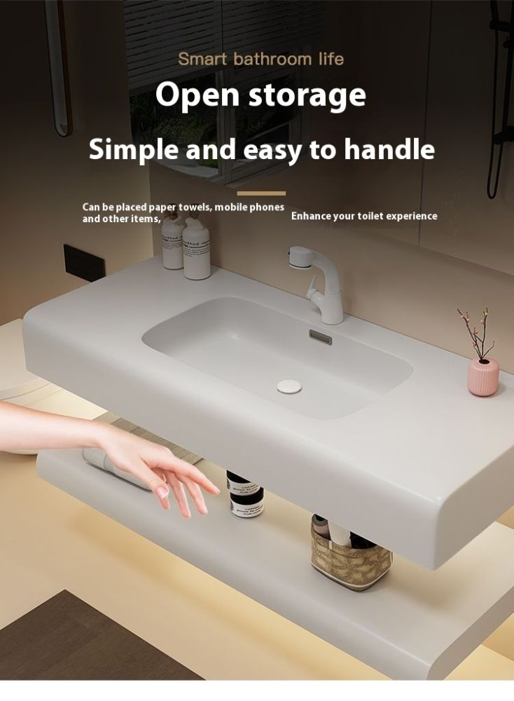 • QW- Stone Sink Smart Mirror in the Bathroom Storage Cabinet