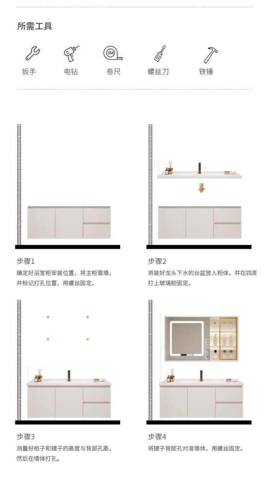 QW- Storage Cabinet Smart Mirror Sink in the Bathroom