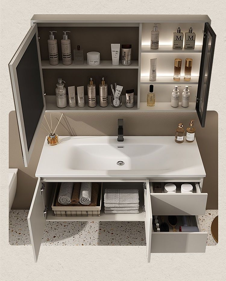 QW- Washbasin with Smart Mirror Bathroom, Real Wood Storage Cabinet in the Bathroom